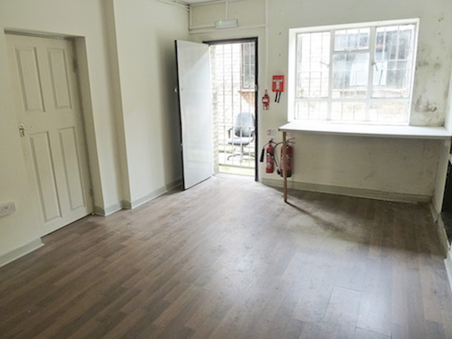 N4_Manor House, Overbury Road – 3000 sq ft ground floor showroom / office / work space to rent with large window frontage. The ground floor is open plan, with 2 rooms / offices separated by glazed partitions. There is an open plan kitchen area and male and female WCs. The unit is painted white throughout,