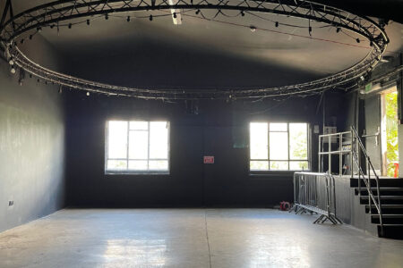 1800 sq ft warehouse photography space with high roof, riverside area and boat mooring available in E3 Hackney Wick