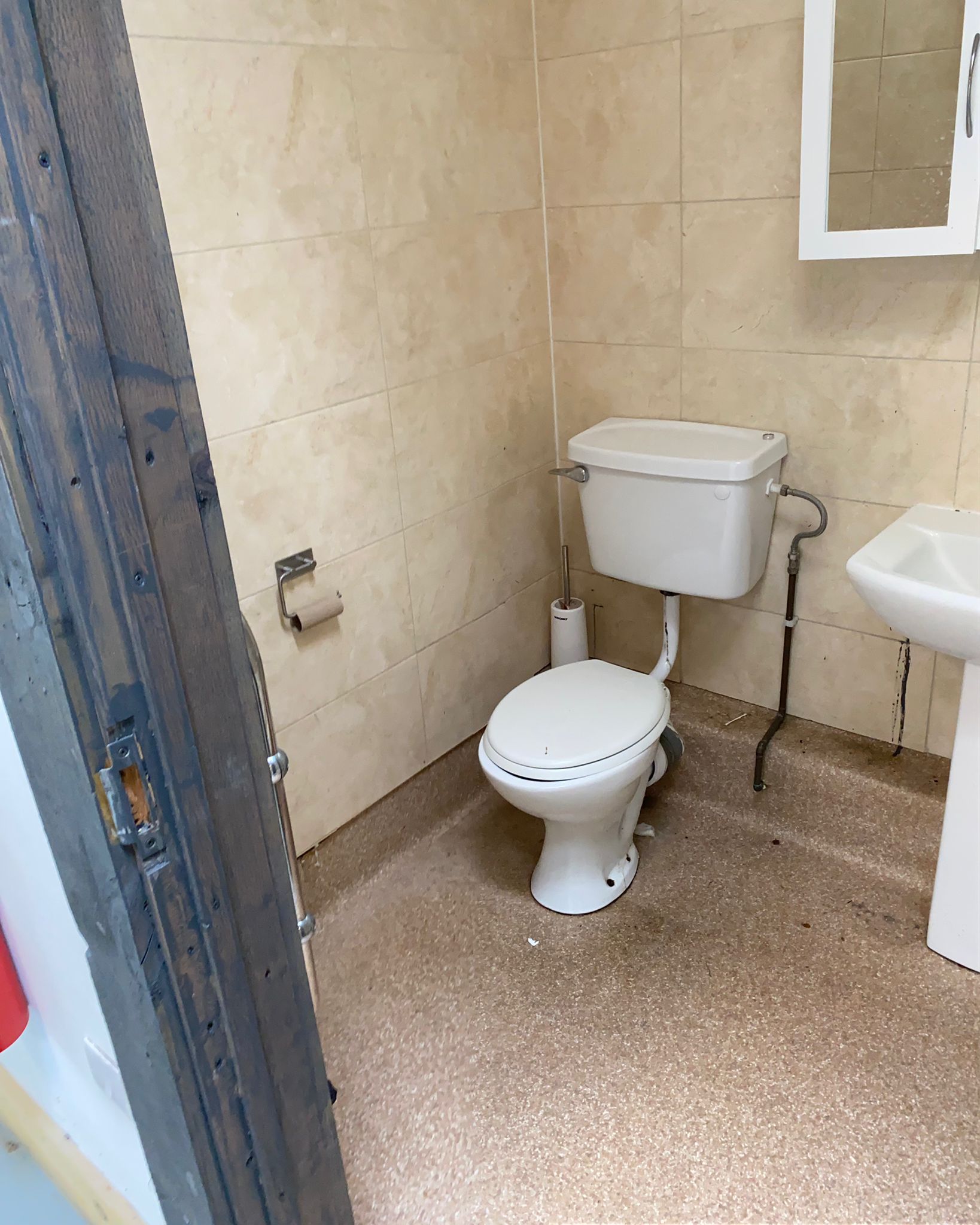 There is a small kitchen area, and a separate WC room (with shower, sink and WC)