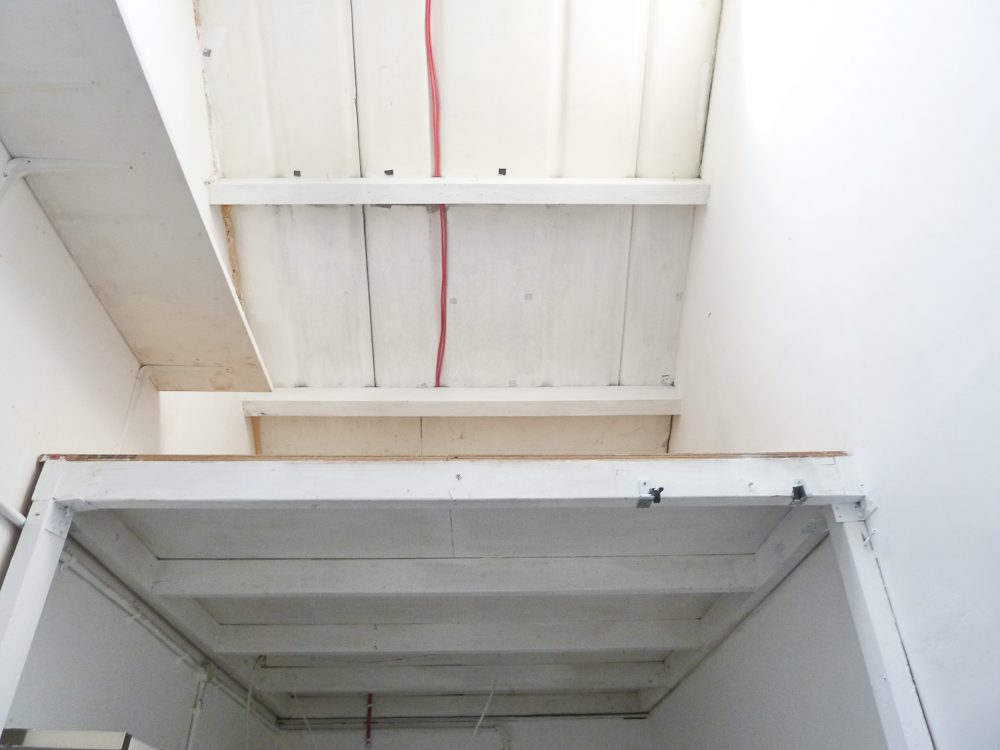 The studio consists of 200 sq ft on the ground floor, a mezzanine area of 50 sq ft and has a pitched roof with skylights to let in natural light.