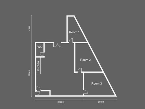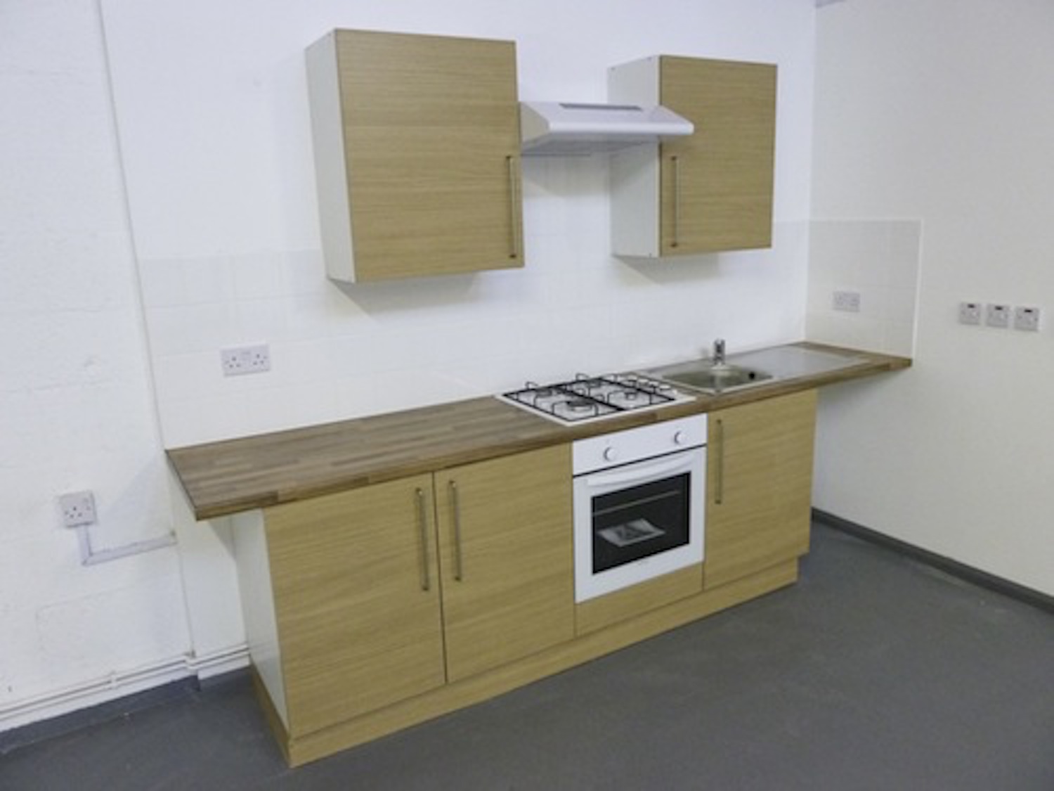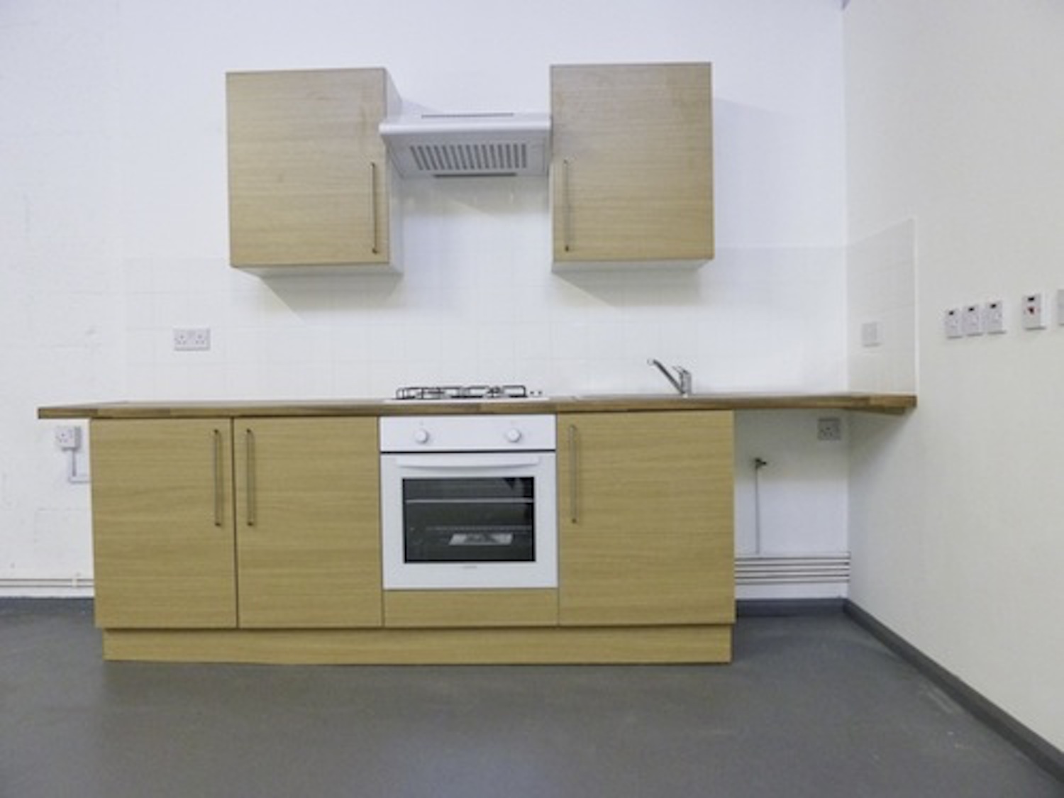 Unit has large open area, 3 rooms, kitchen area, WC, electricity, lighting and gas central heating.