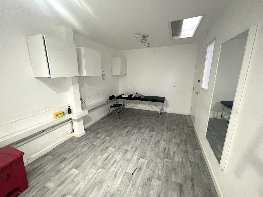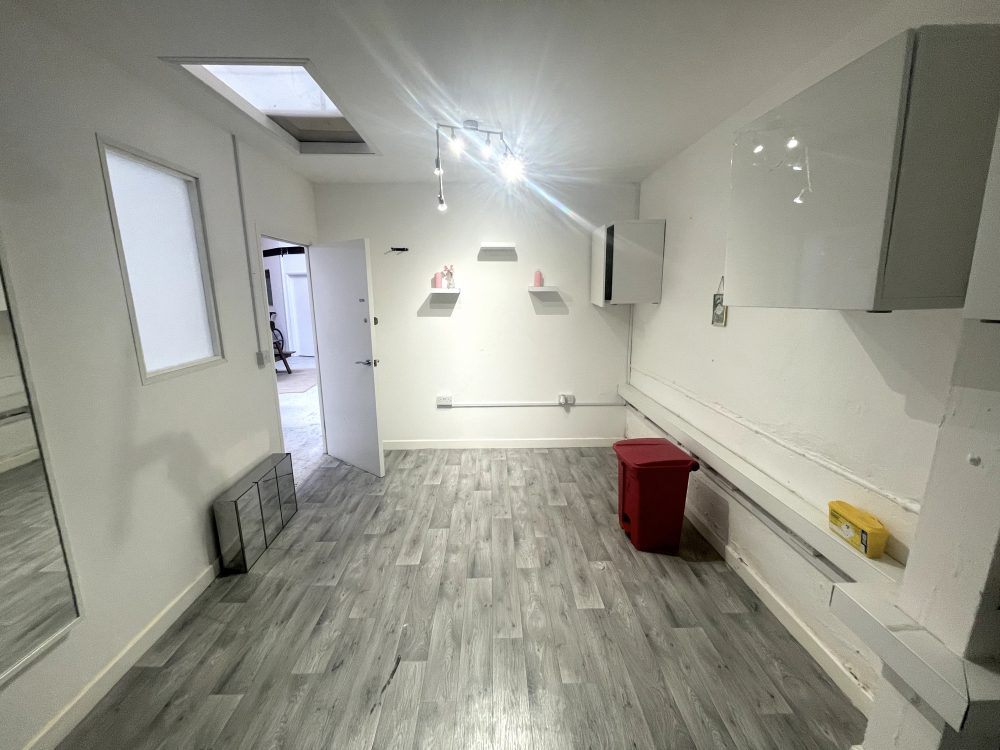 This studio is 180 sq ft in total and also has a ceiling height of 8.4 ft, it has bright white walls throughout, a grey lino laminate floor, two windows and a small skylight. – £174 Pw + VAT (RENT INCLUDES BILLS)