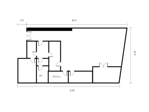 The space is located on the 1st floor and consists of a huge open area, big enough for 8 – 10 desks, 5 separate office rooms a kitchen area and bathroom.