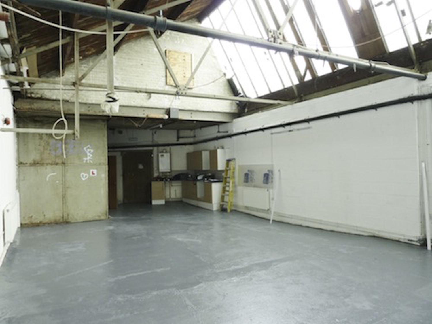 Live work unit to rent in 2000 sq ft converted warehouse with 7 bedrooms, open area, skylights, kitchen, bathroom and WC