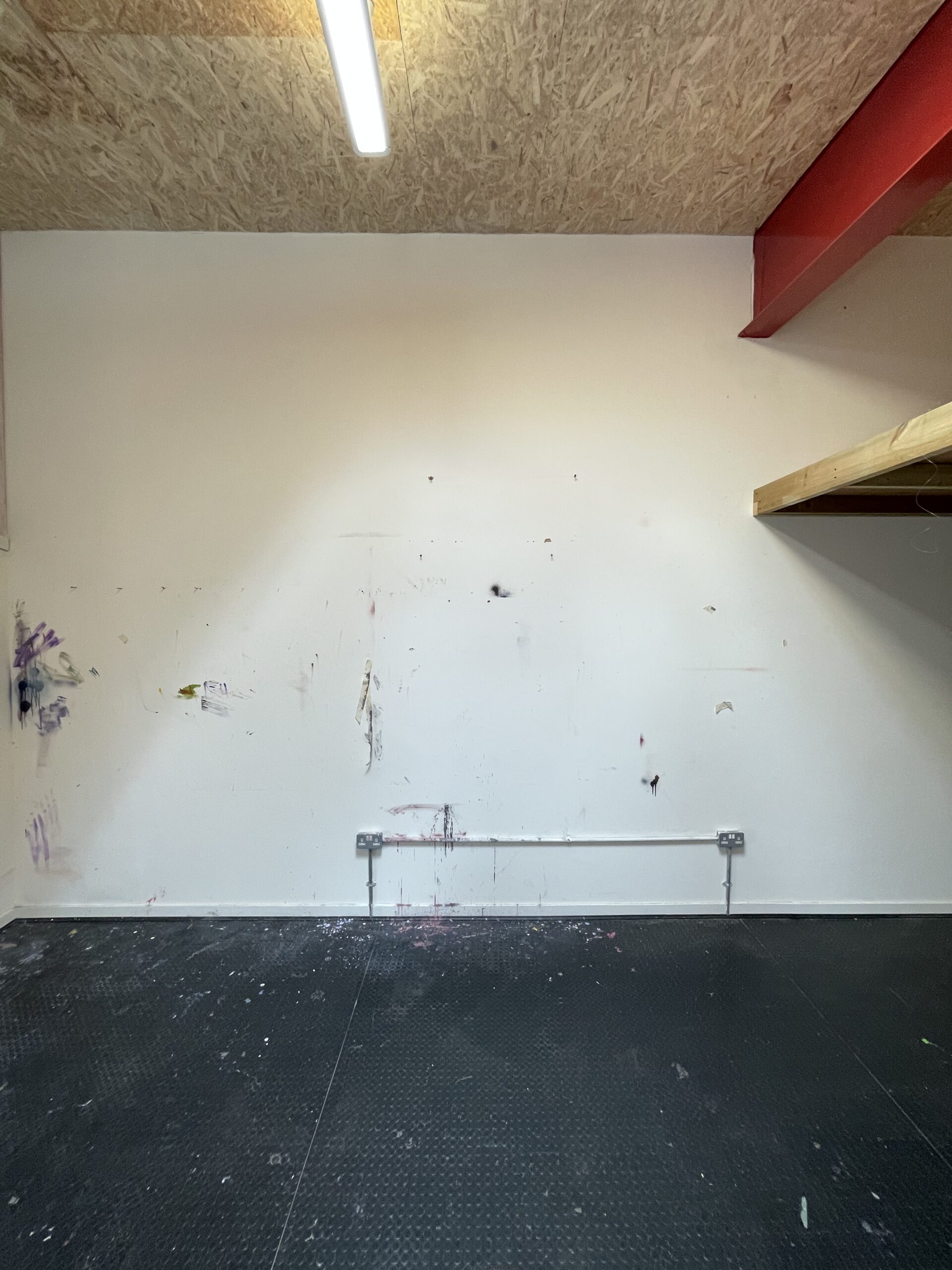 The studio is open plan, has breeze block walls, a concrete floor, sink, electricity / lighting and heating.