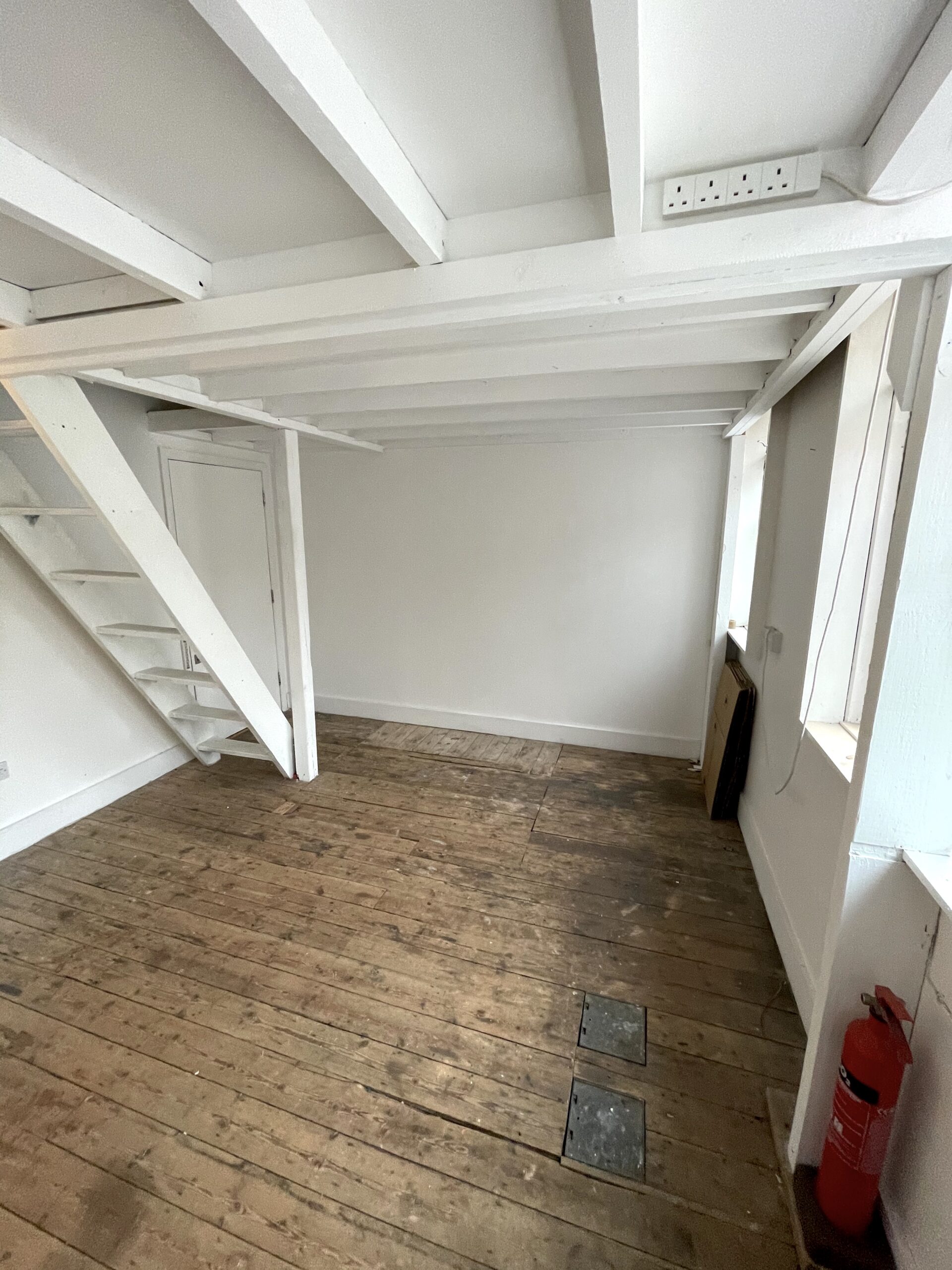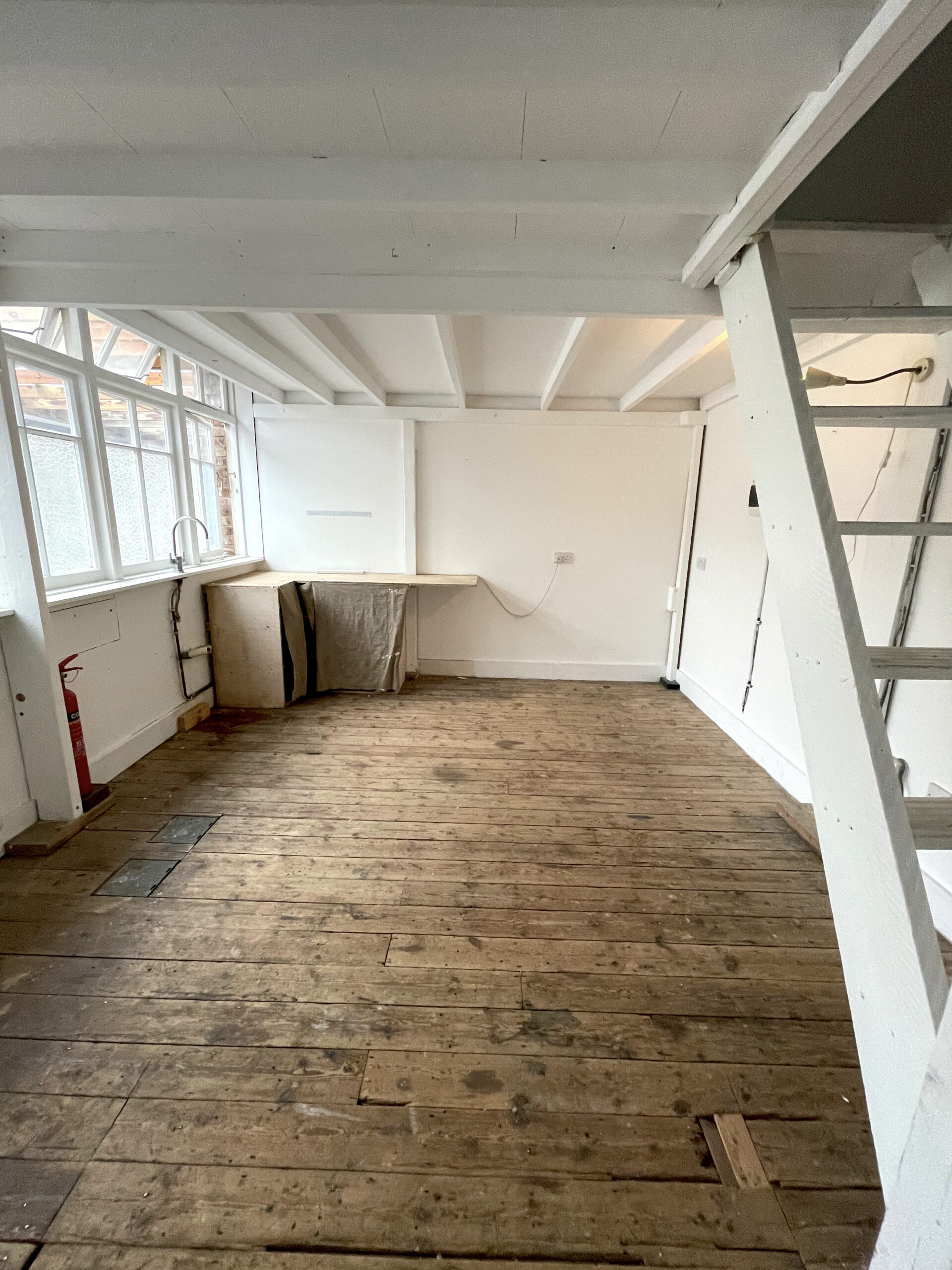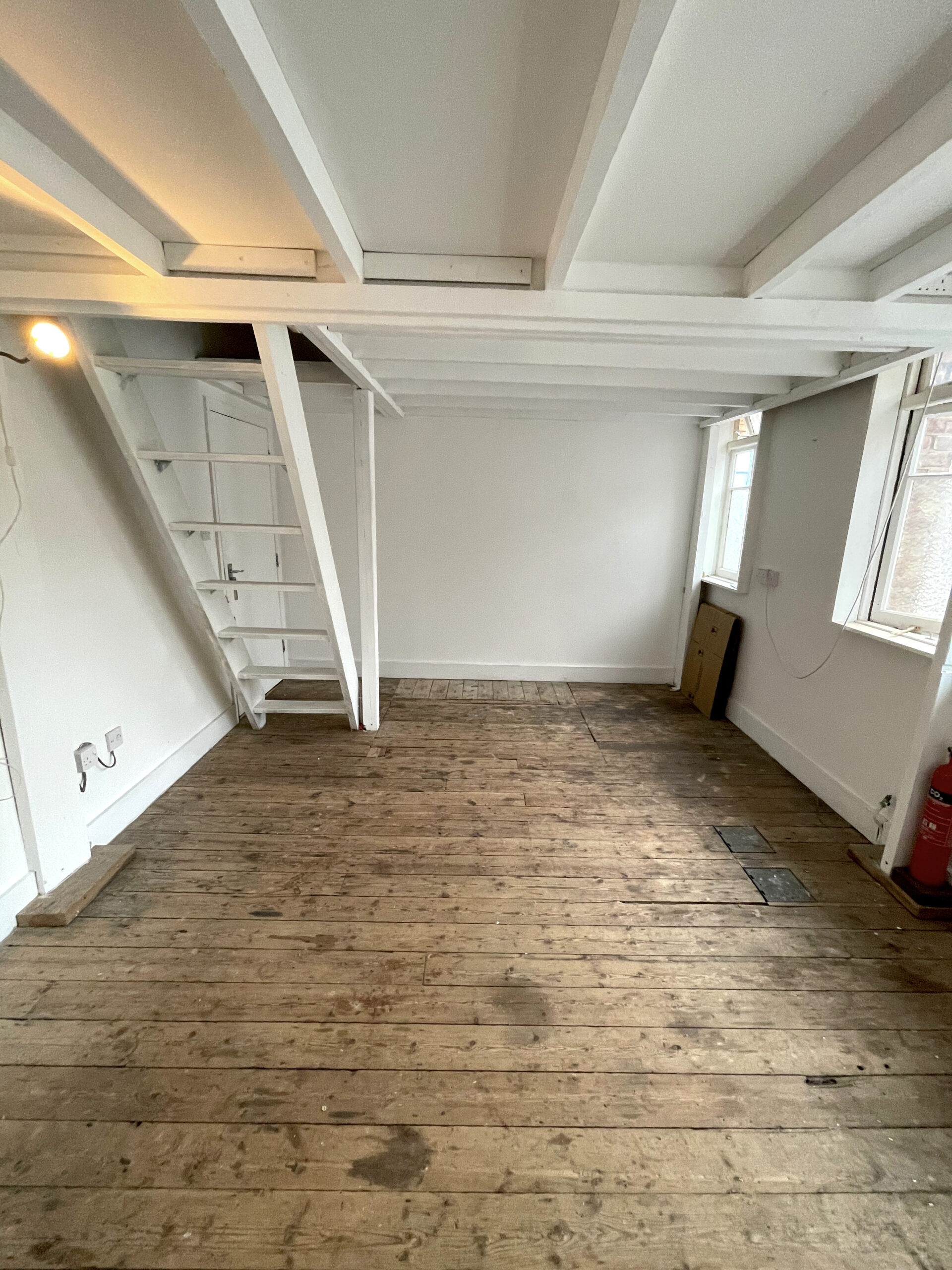 300 sq ft 1st floor studio with small mezzanine available to rent in converted warehouse.