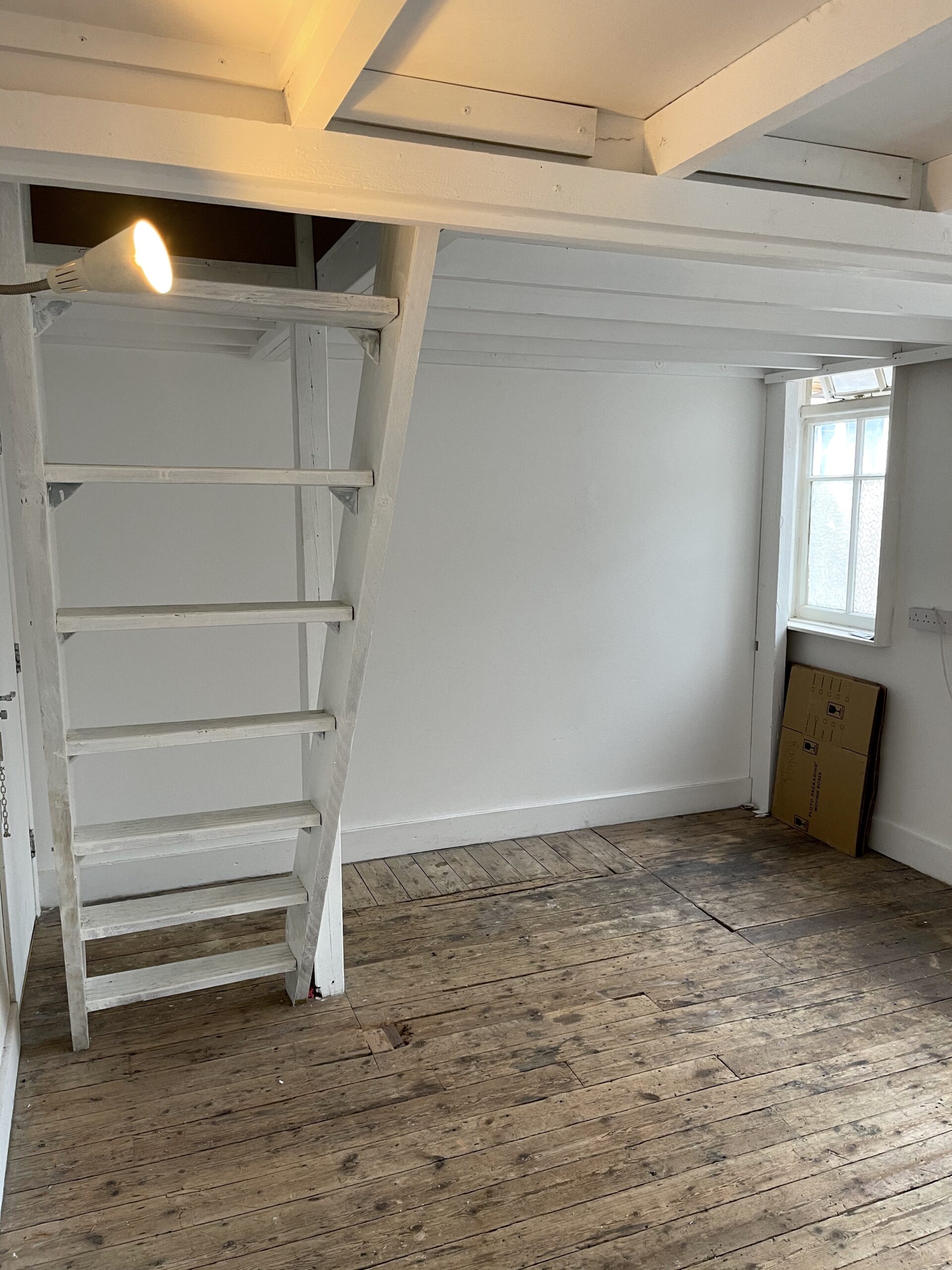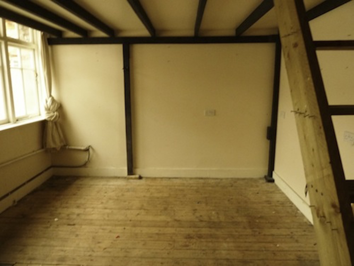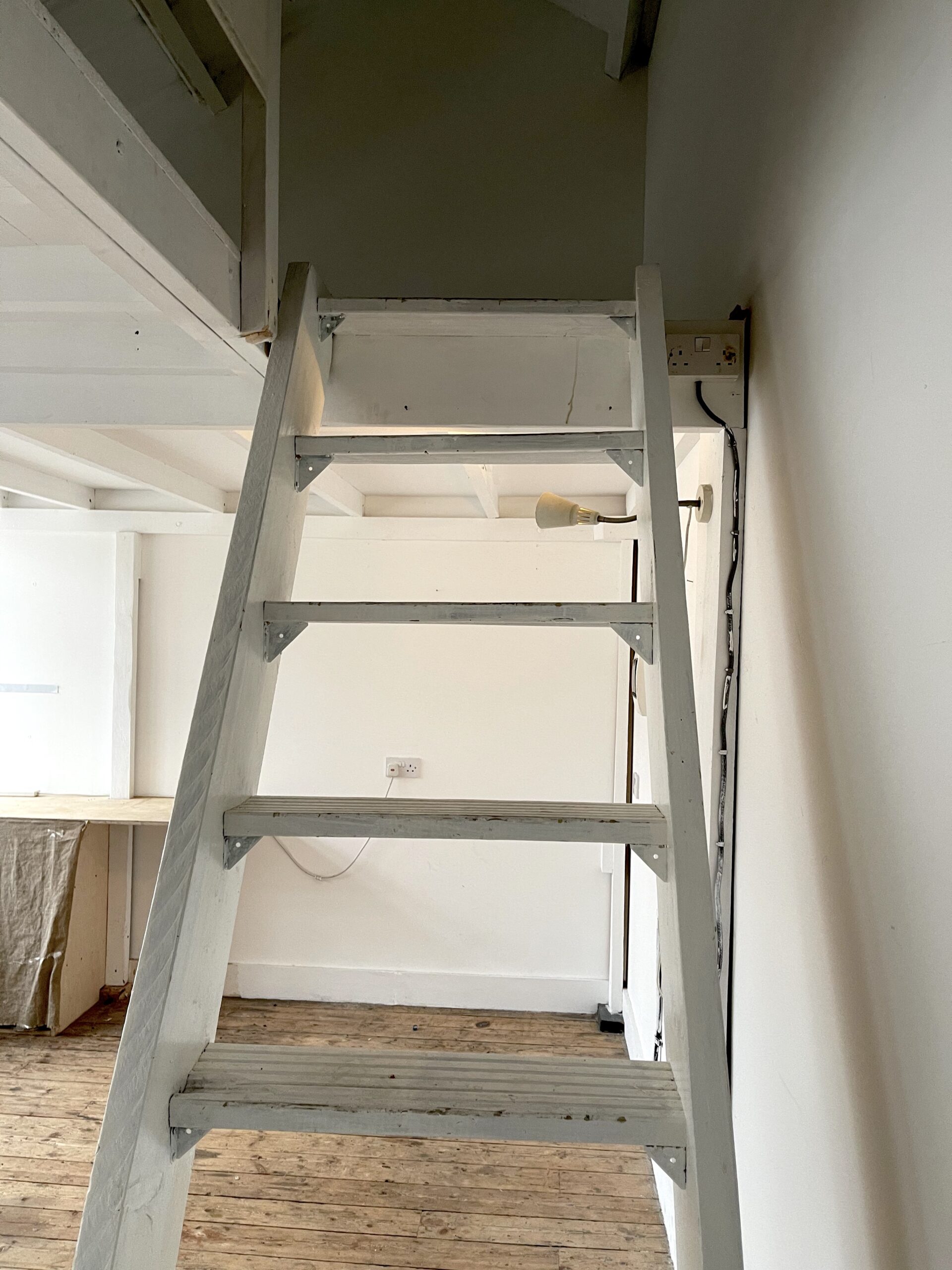 300 sq ft 1st floor studio with small mezzanine available to rent in converted warehouse.