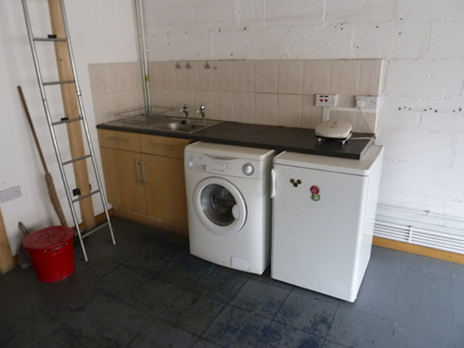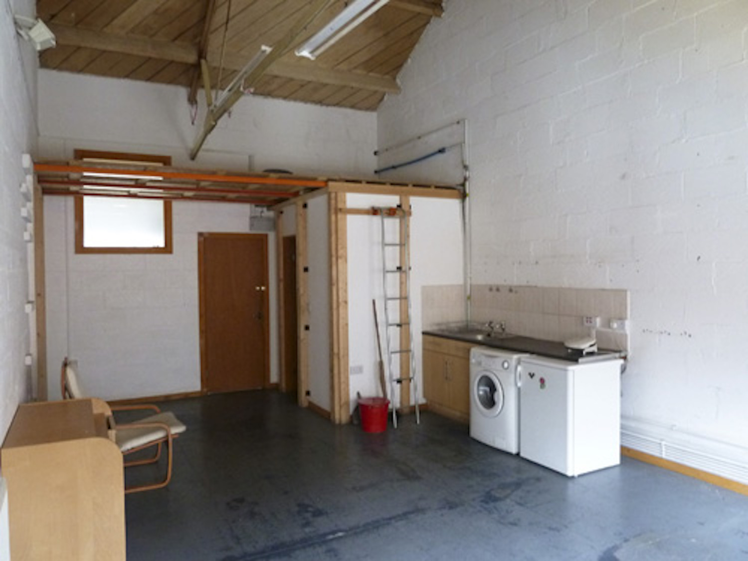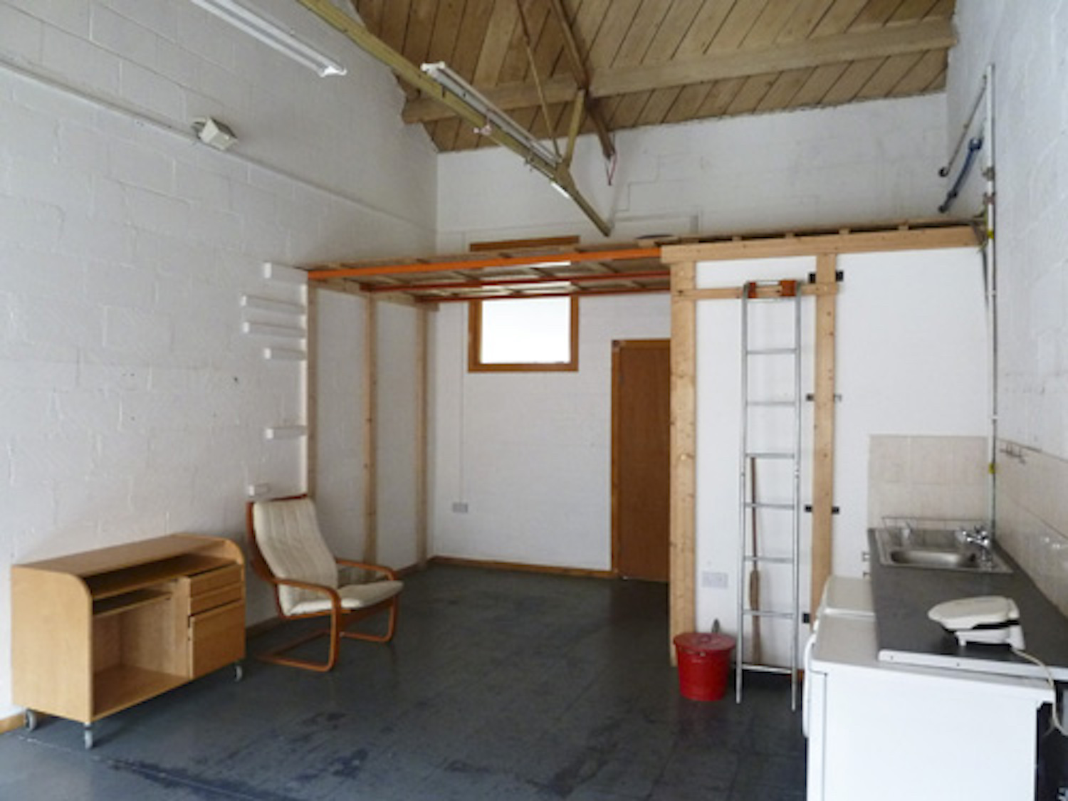 The studio has electricity points, lighting, gas central heating, a toilet, shower, kitchen sink.
