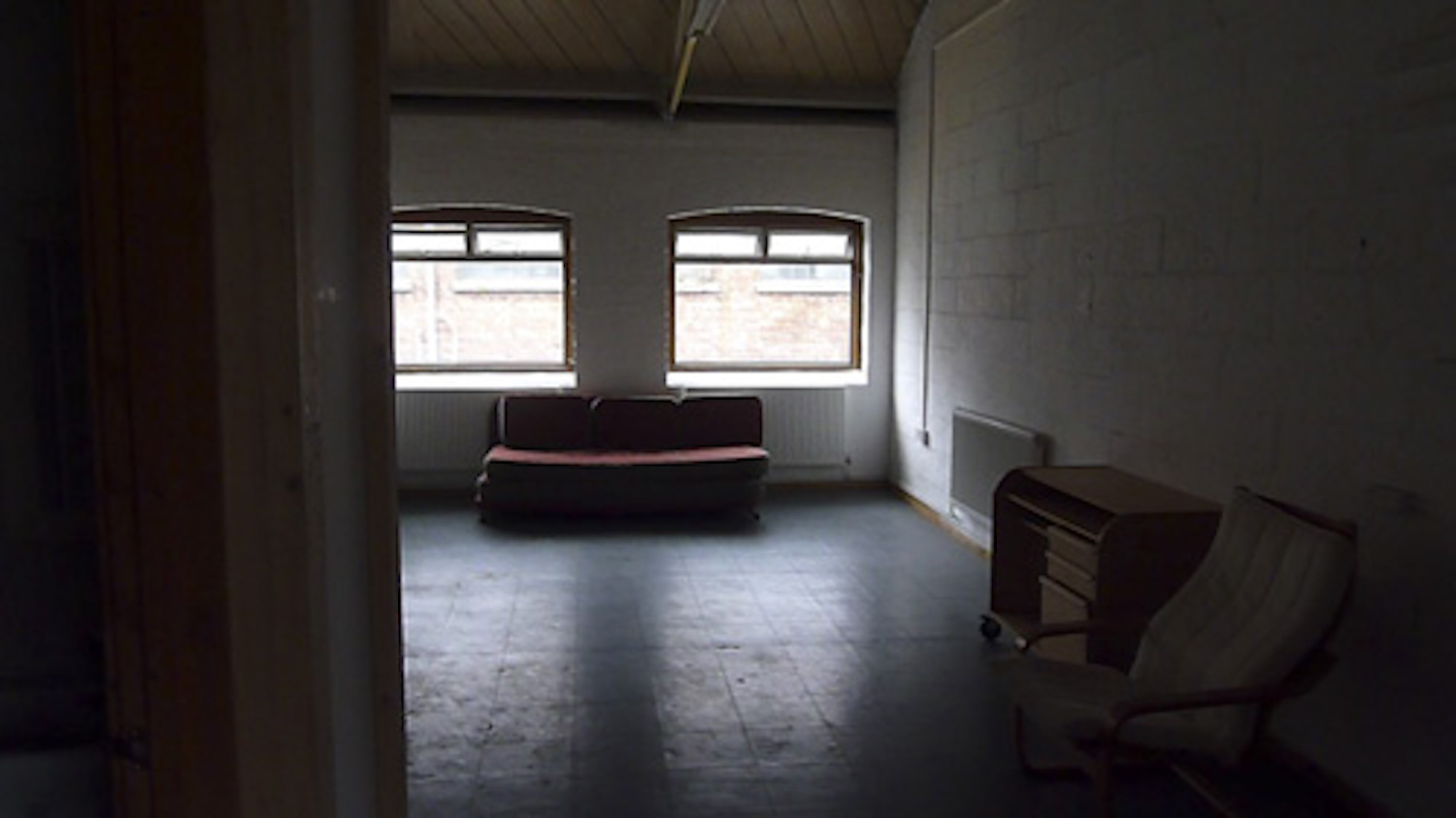 Studio is on the ground floor of a converted Victorian warehouse.