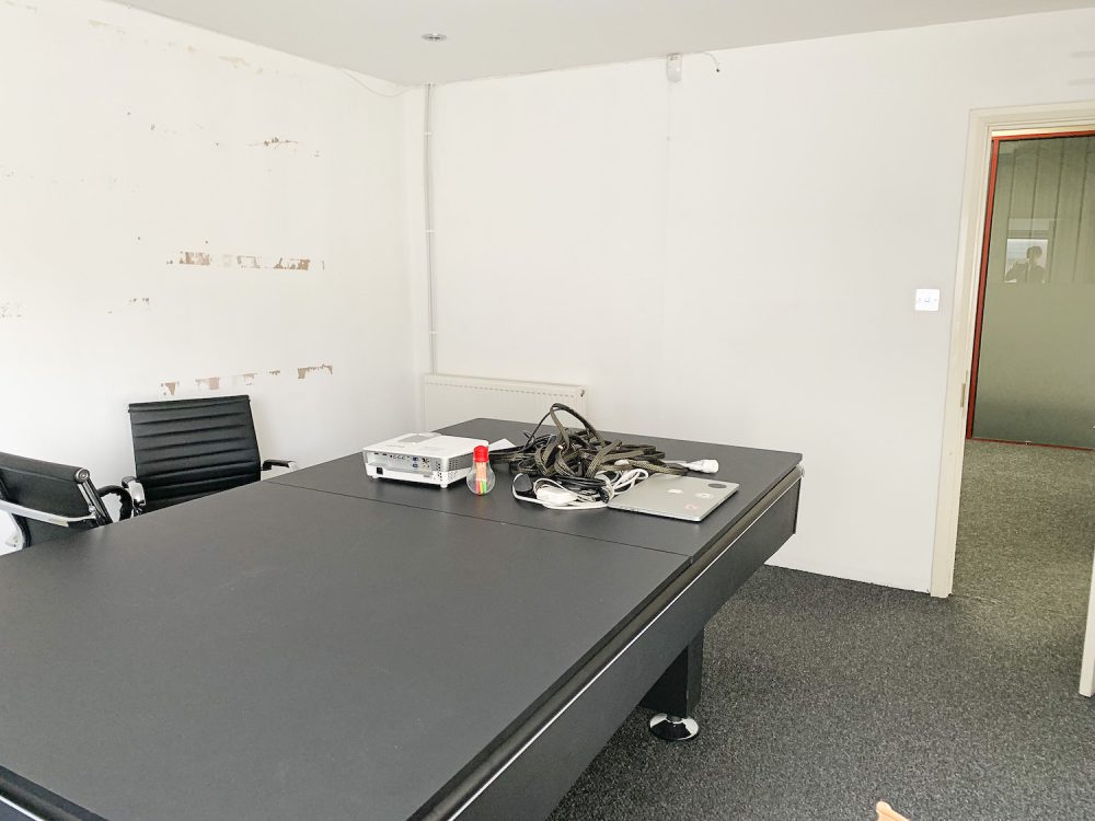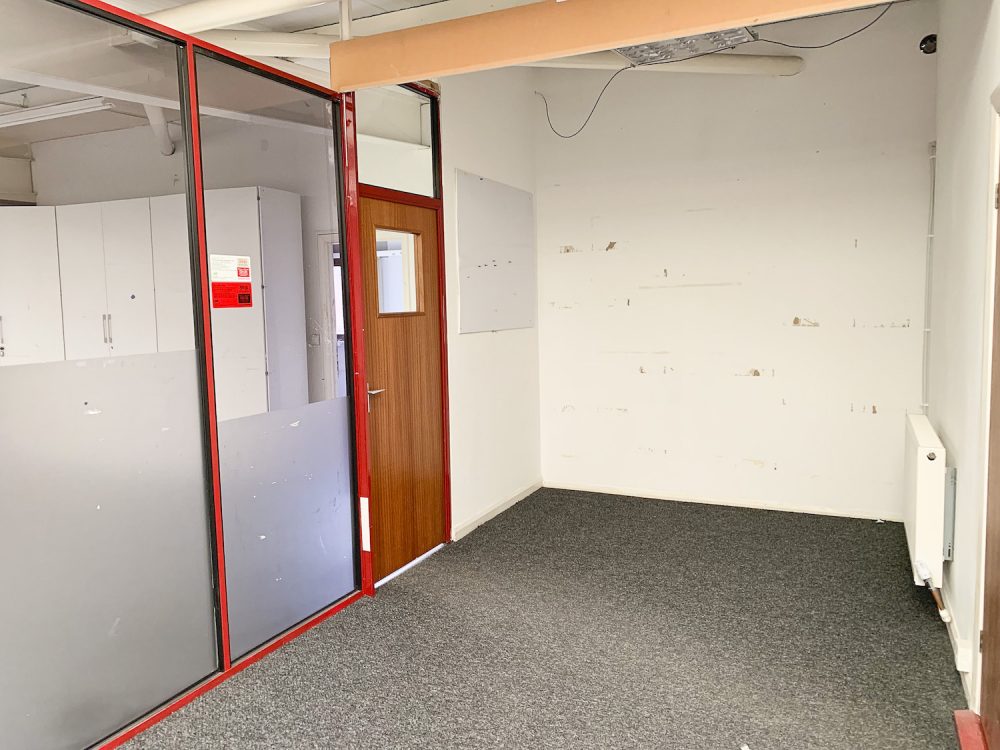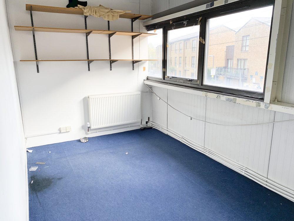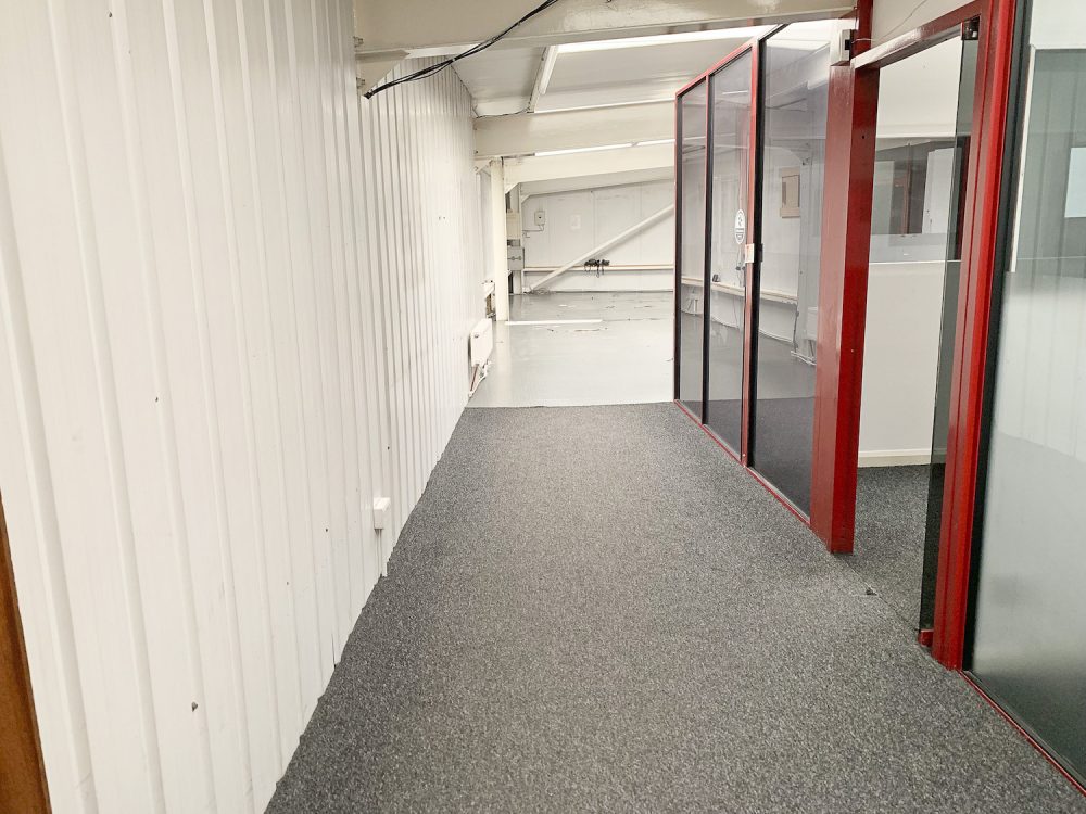 This split level warehouse conversion consists of a huge 2000 sq ft space on the first floor, with an open area big enough for  8  – 10 desks,  5 separate office rooms a kitchen area and bathroom.