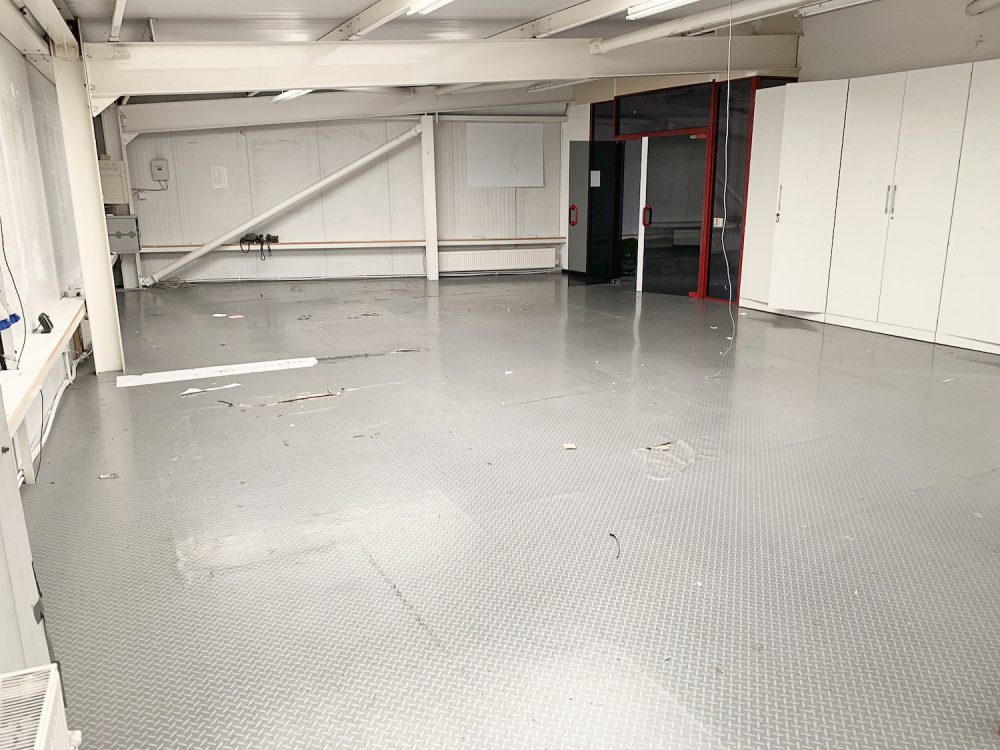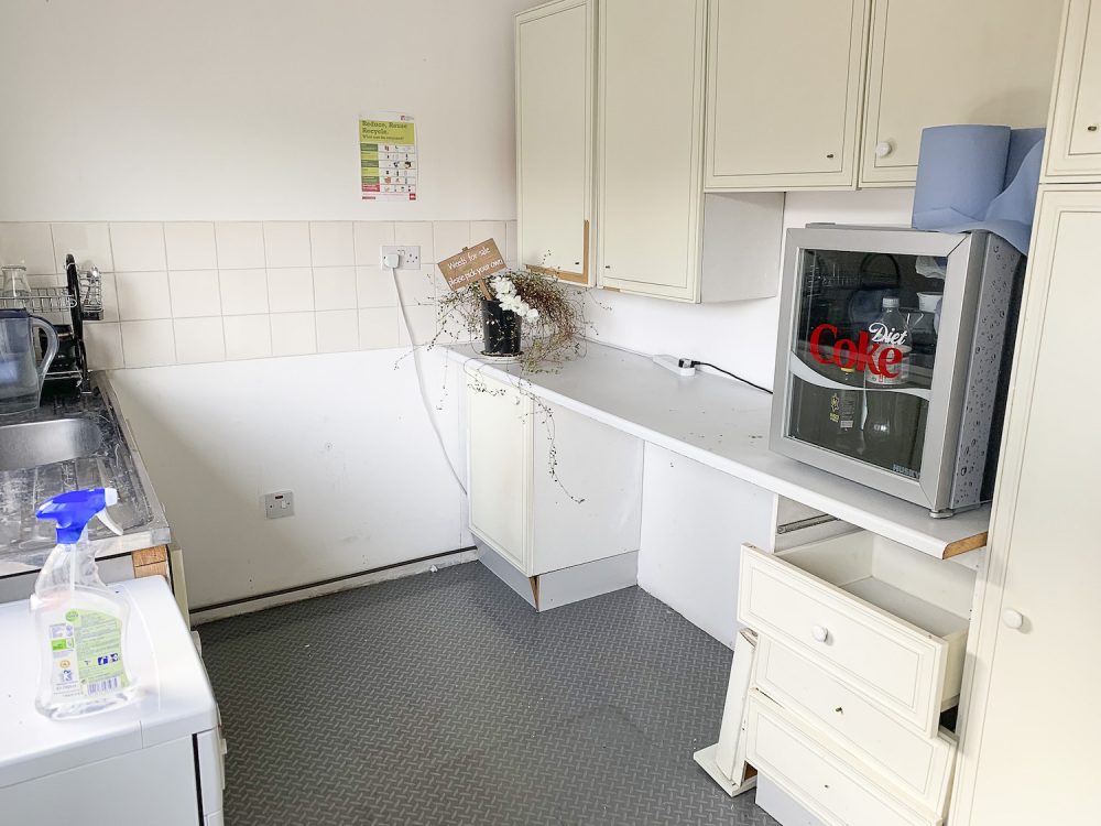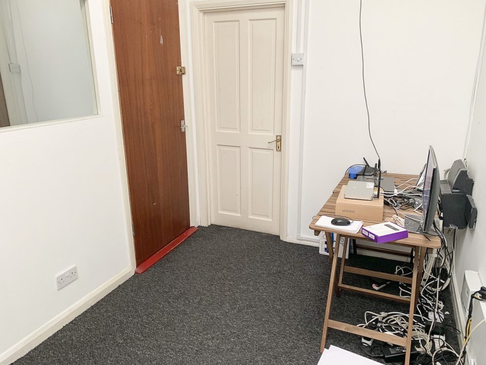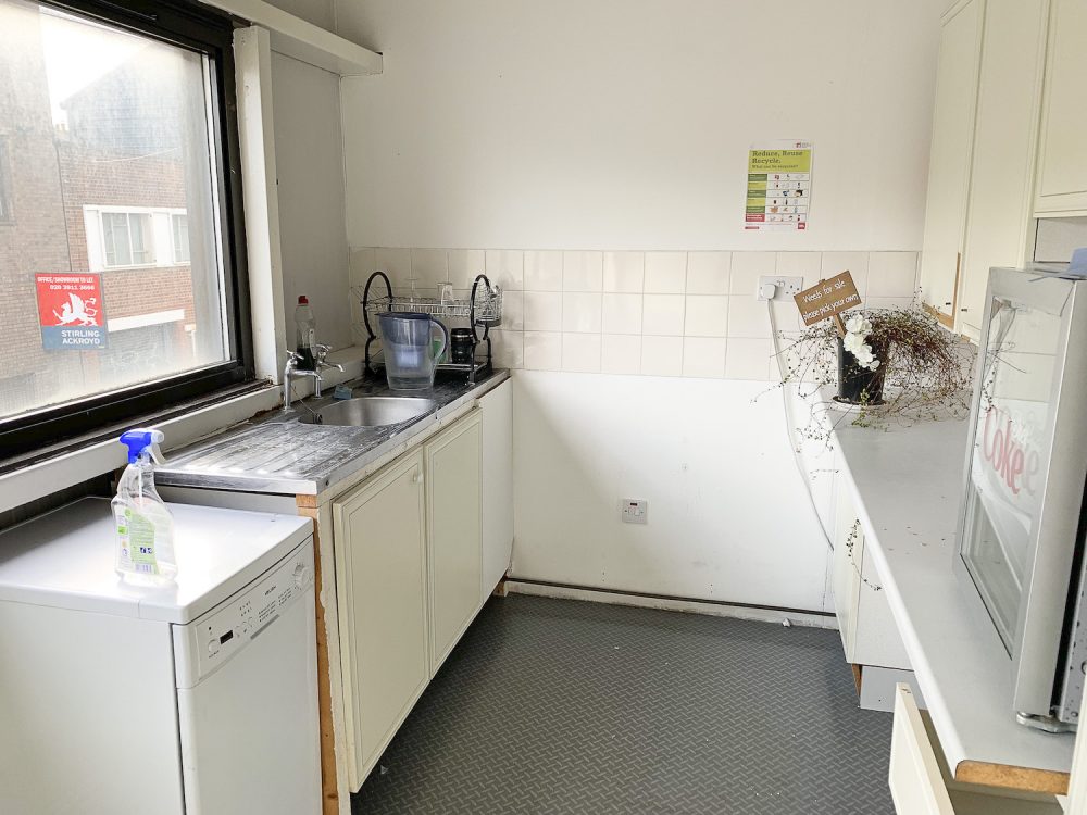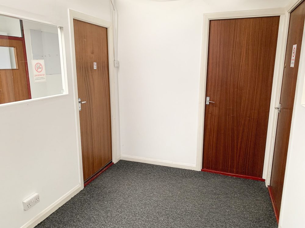 This split level warehouse conversion consists of a huge 2000 sq ft space on the first floor, with an open area big enough for  8  – 10 desks,  5 separate office rooms a kitchen area and bathroom.
