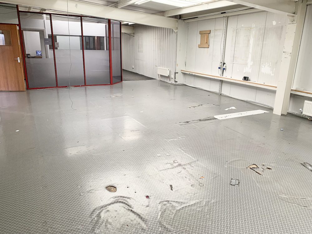 The Ground floor is also 2000 sq ft in size and consists of an open area with a high roof and roller shutter access directly on to Vyner st