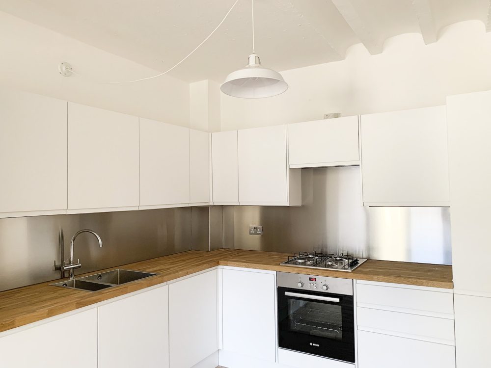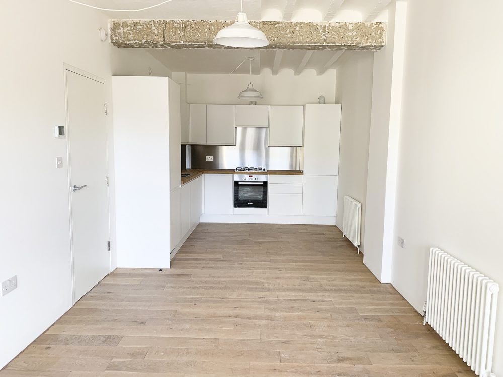 1 double bedroom flat to rent in warehouse conversion, huge 550 sq ft in size with large open area, open plan kitchen, WC, and balcony.