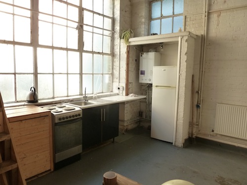 The studio has a concrete floor (painted flint grey), electricity, lighting and gas central heating.