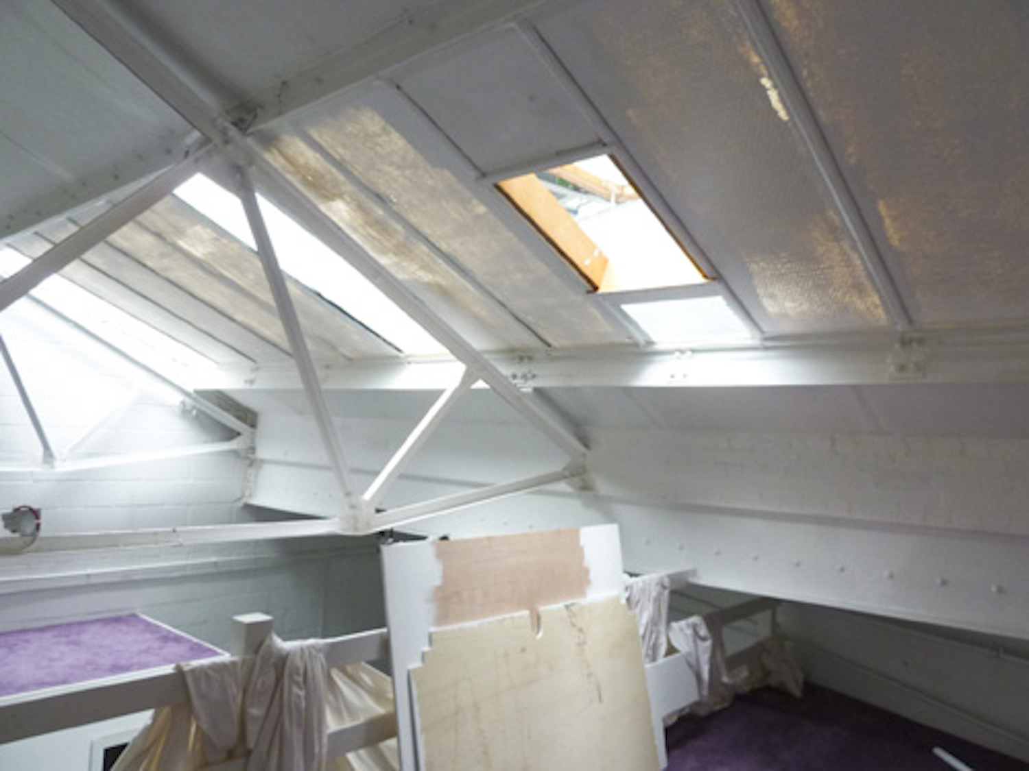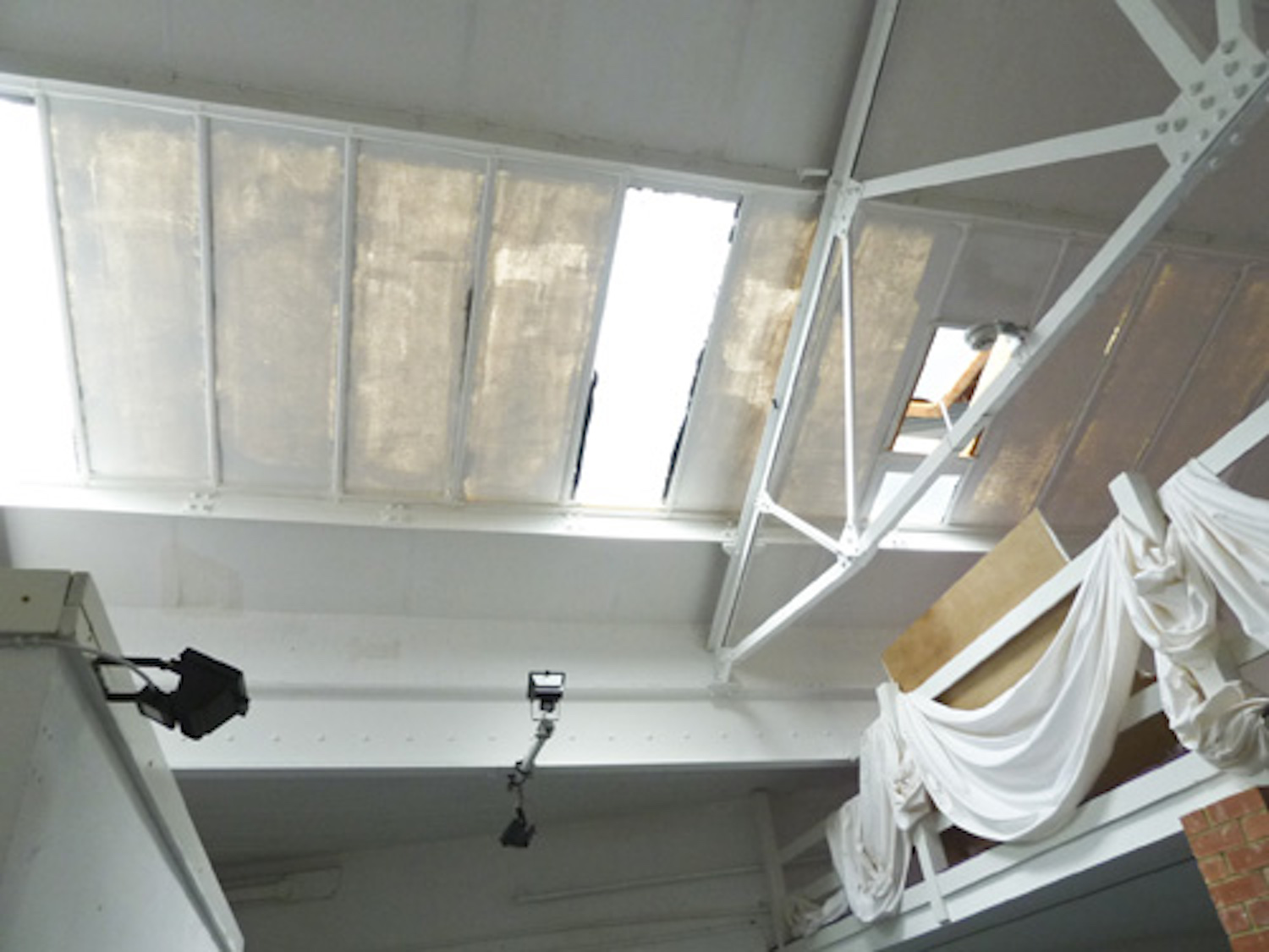 Studio has lots of natural light, there are windows and skylights in the roof.