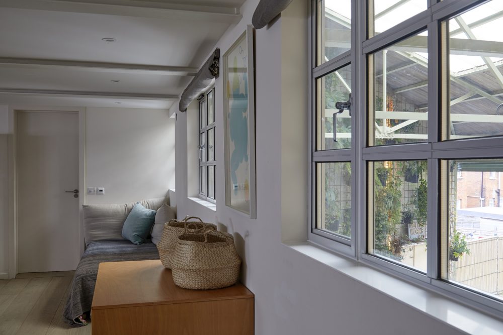 The building retains an industrial aesthetic, with exposed RSJs, Crittal windows, raw brickwork, and a mixture of concrete, resin and oak floors combined with lofty timber ceilings adorned with glass openings. The resultant marriage of contemporary industrial interiors together with the sublime finishes in the penthouse create a totally unique building.