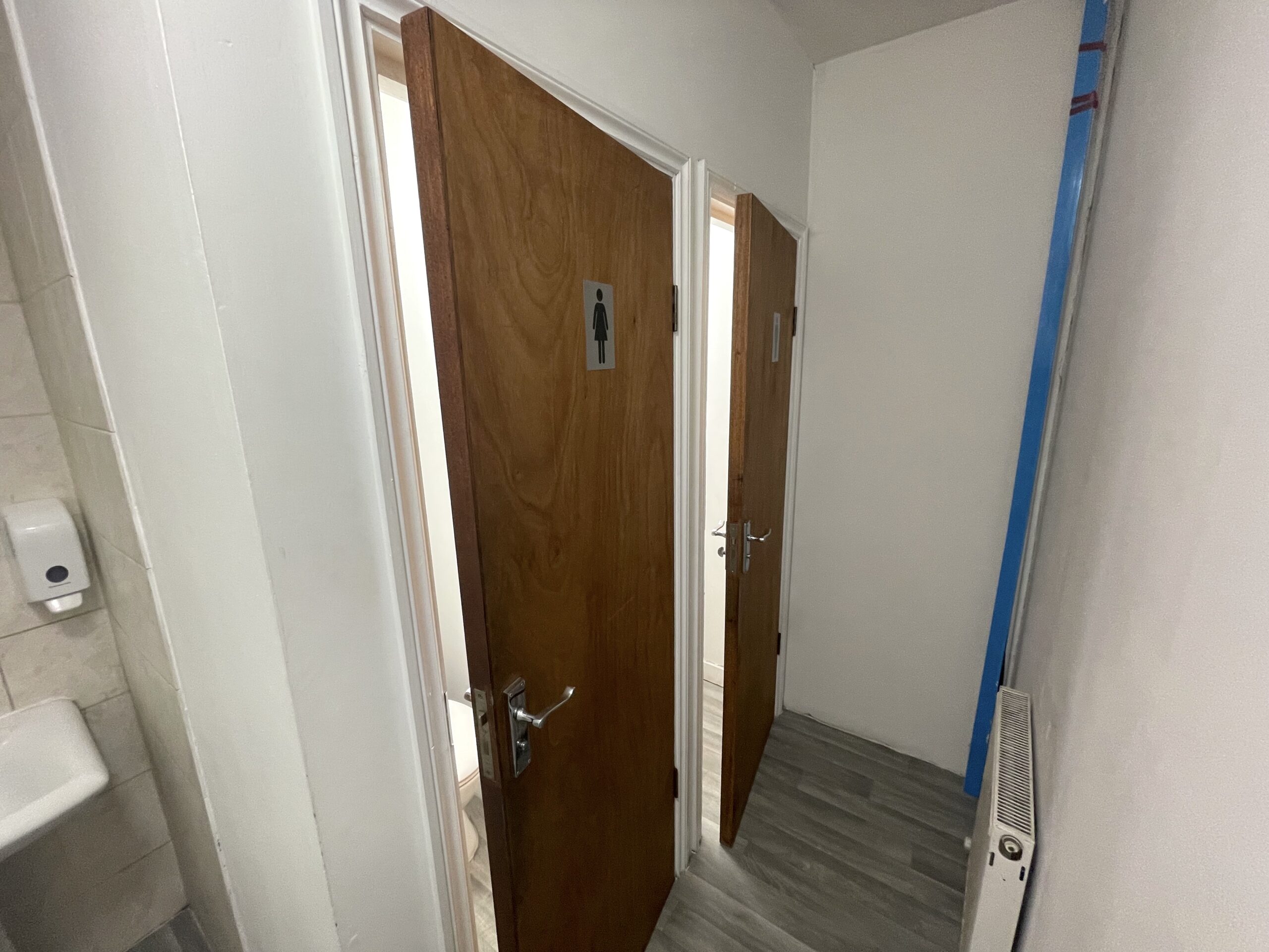 The studio consist of a large open area, with bright white walls, large double glazed windows  for lots of natural light, white walls and white painted concrete flooring, and has a ceiling height of 9 ft.There is an office area in one corner of the unit (95 sq ft), and in the opposite corner is a little showroom / raised area (65 sq ft). Both can be removed to create a large open area.