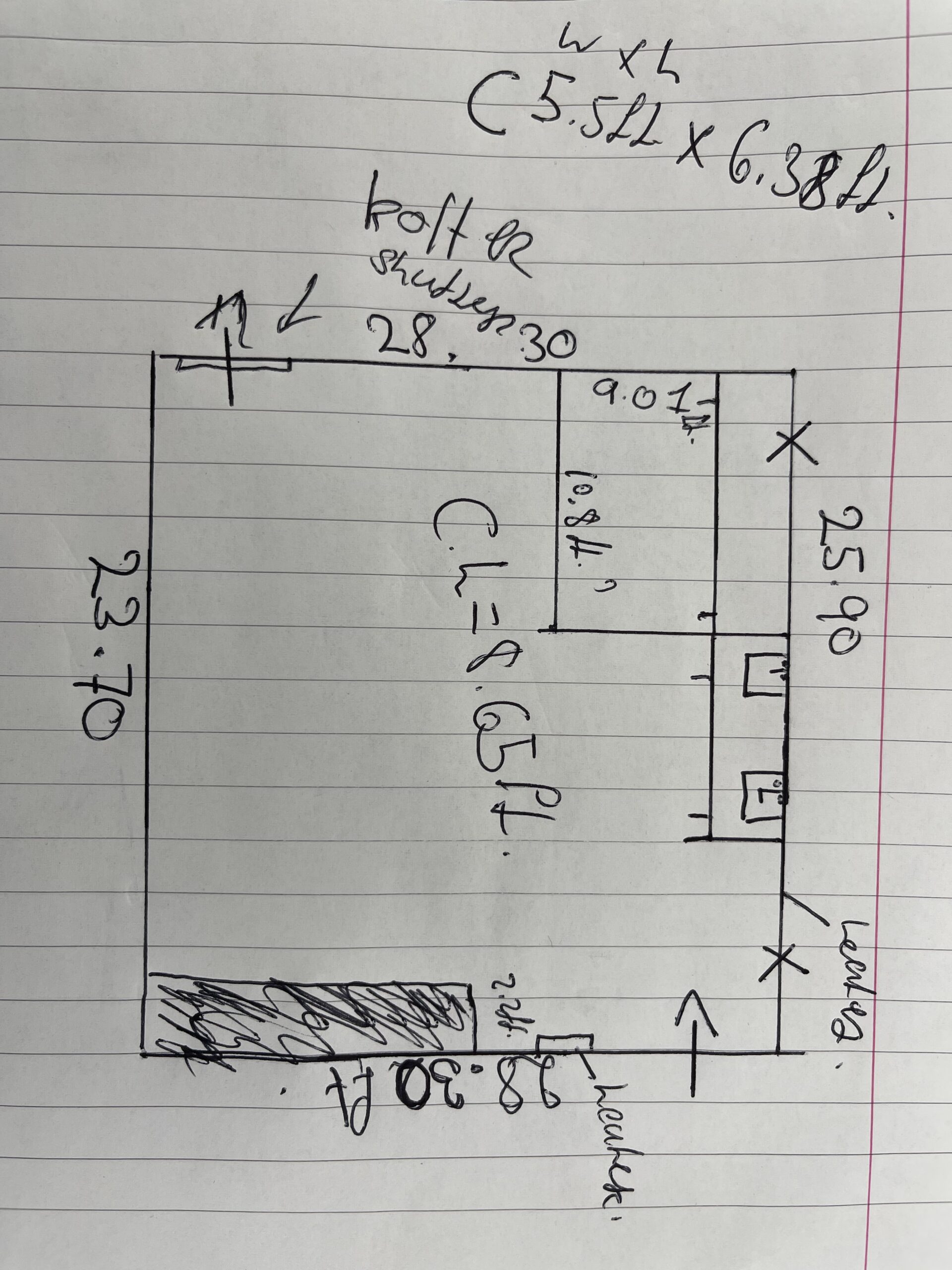 The roller shutter (height 6 ‘3, width 6’3) opens onto an outside area where you can load, etc.