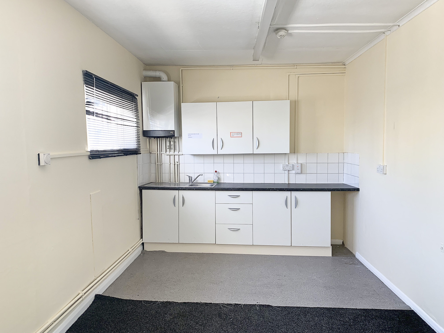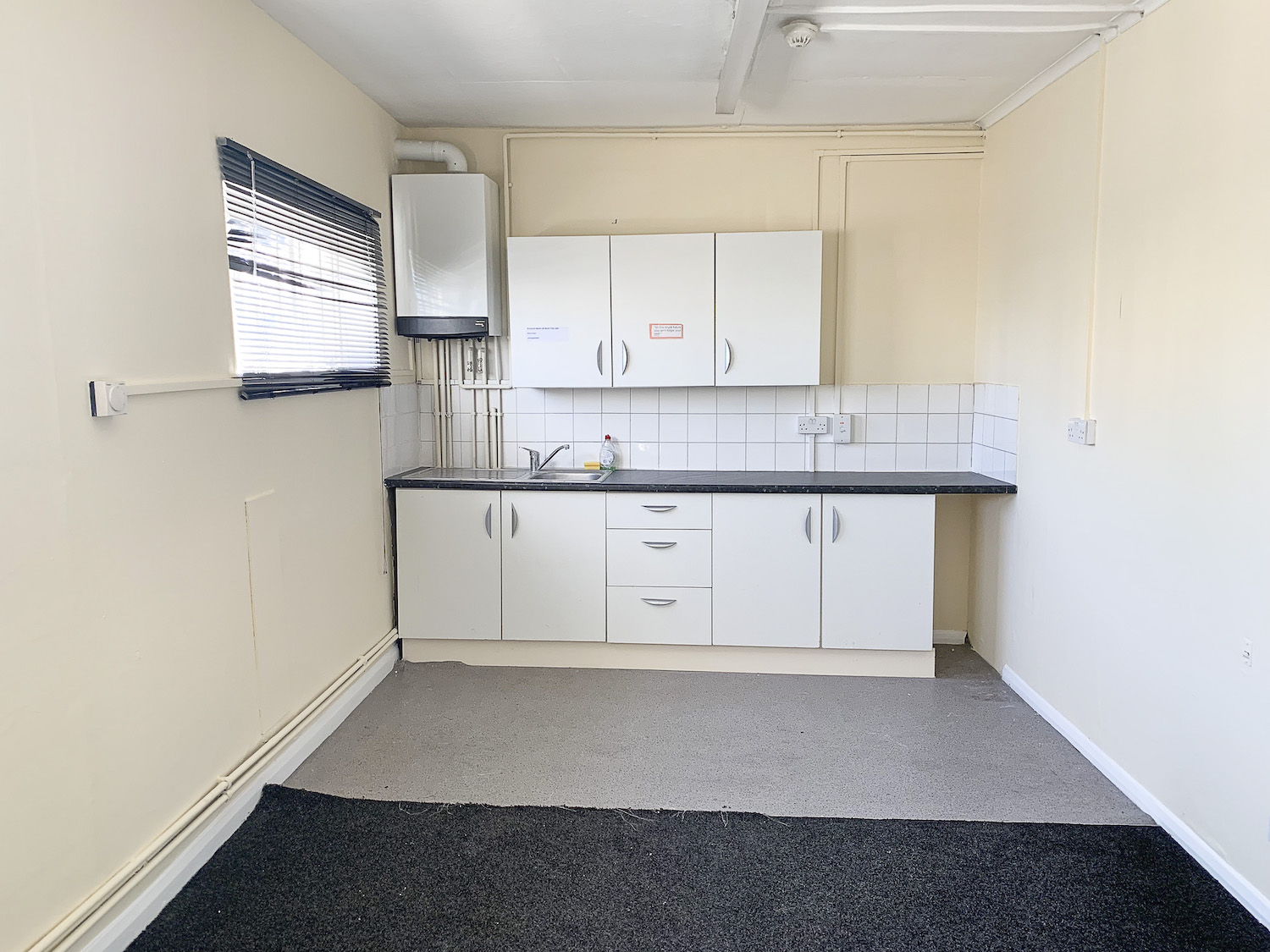 1 Staff canteen, part carpet, kitchen unit installed.
