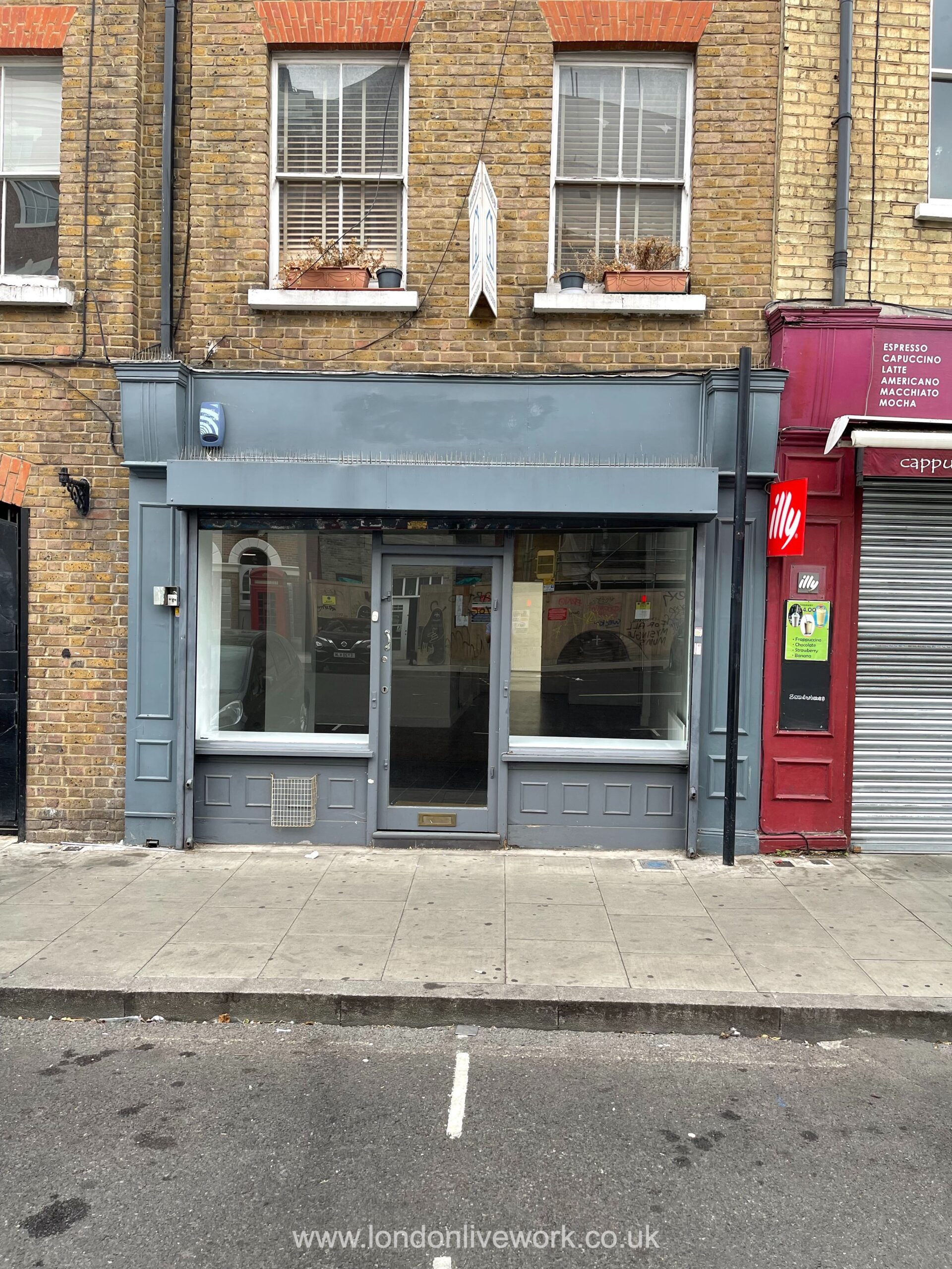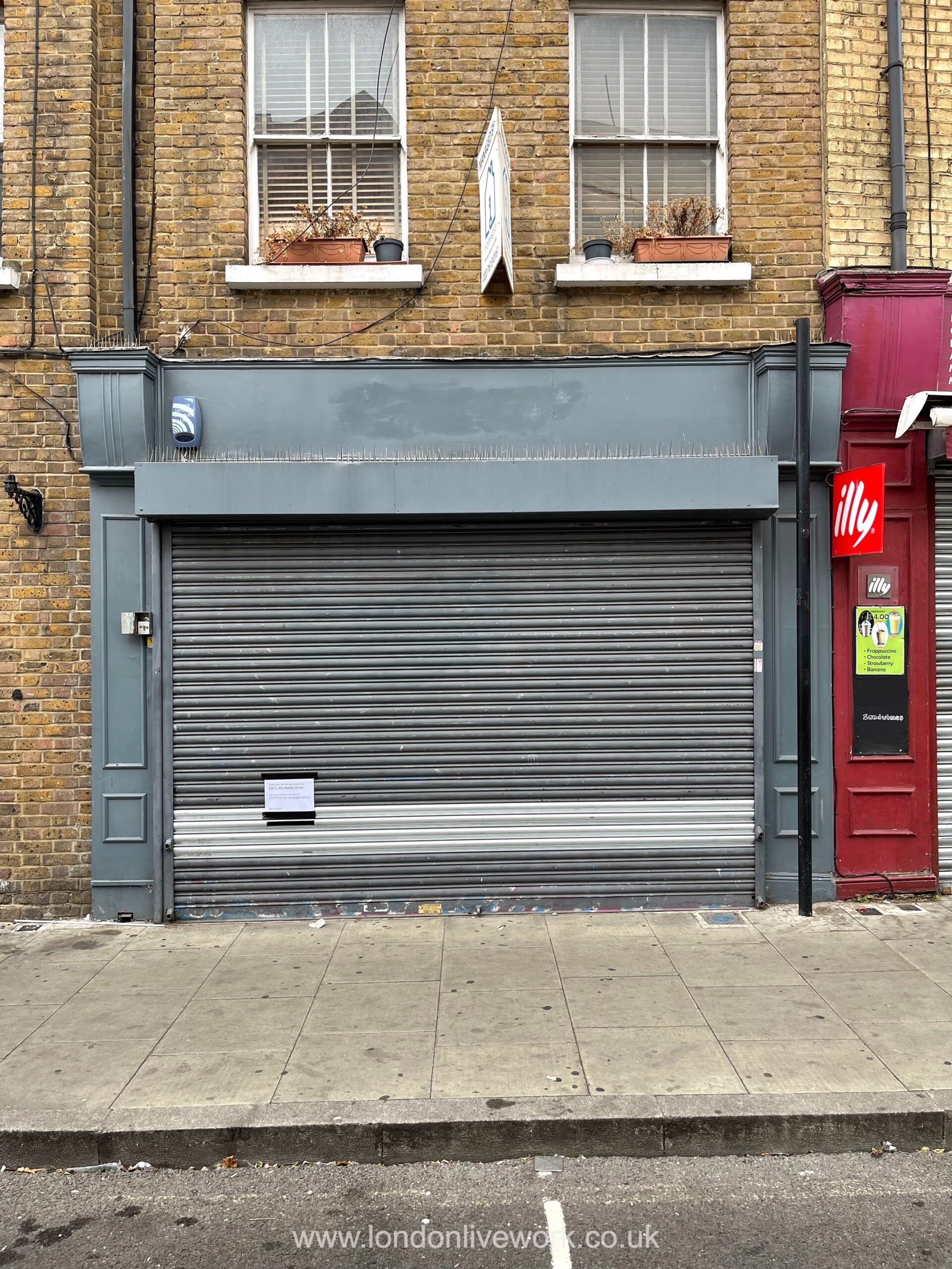There is a huge glass front, and a full length roller shutter for security.