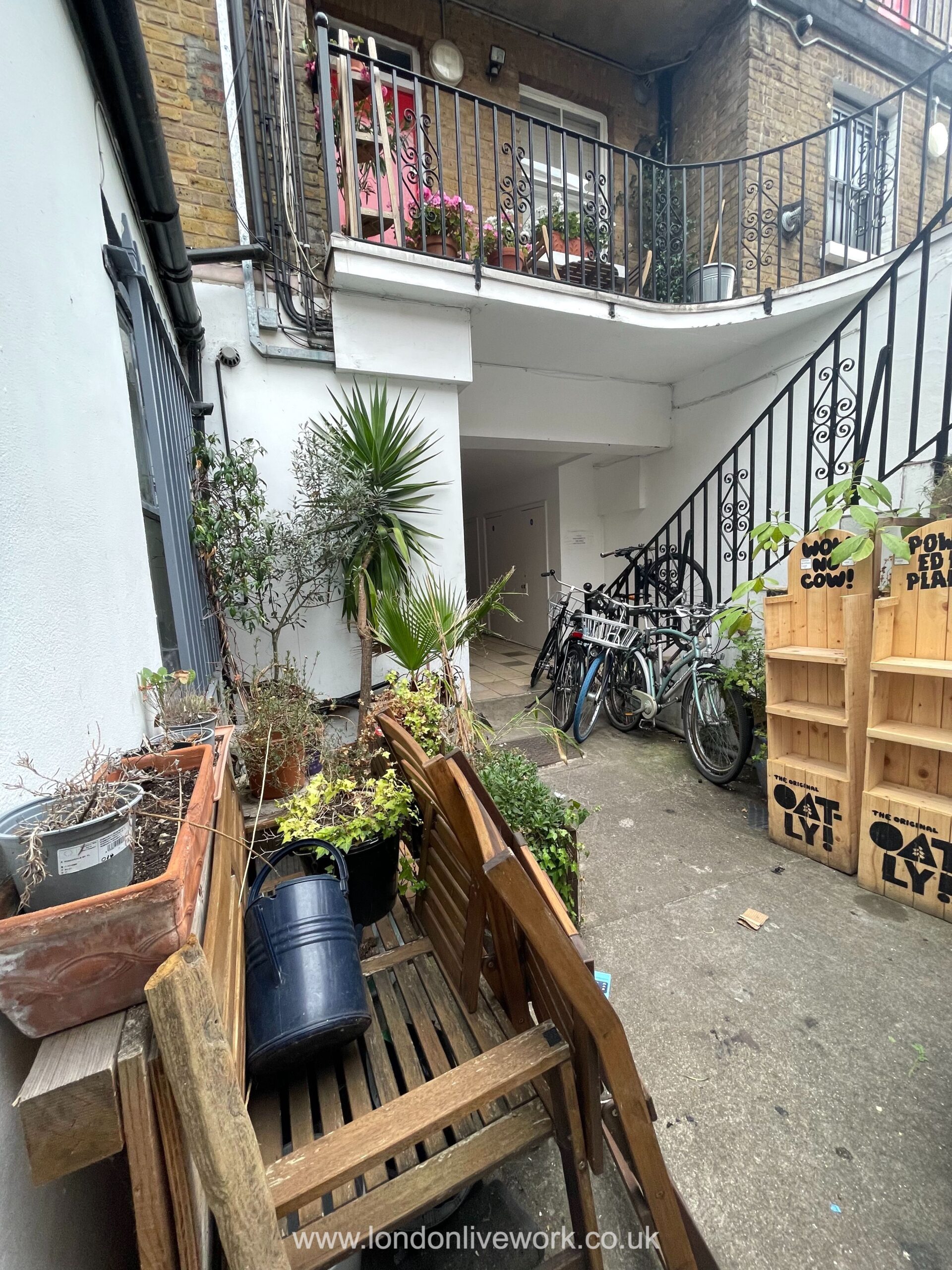 There is a back room behind the main front area which is quite large and has a kitchen / dining area, and leads to a nice shared outside space.