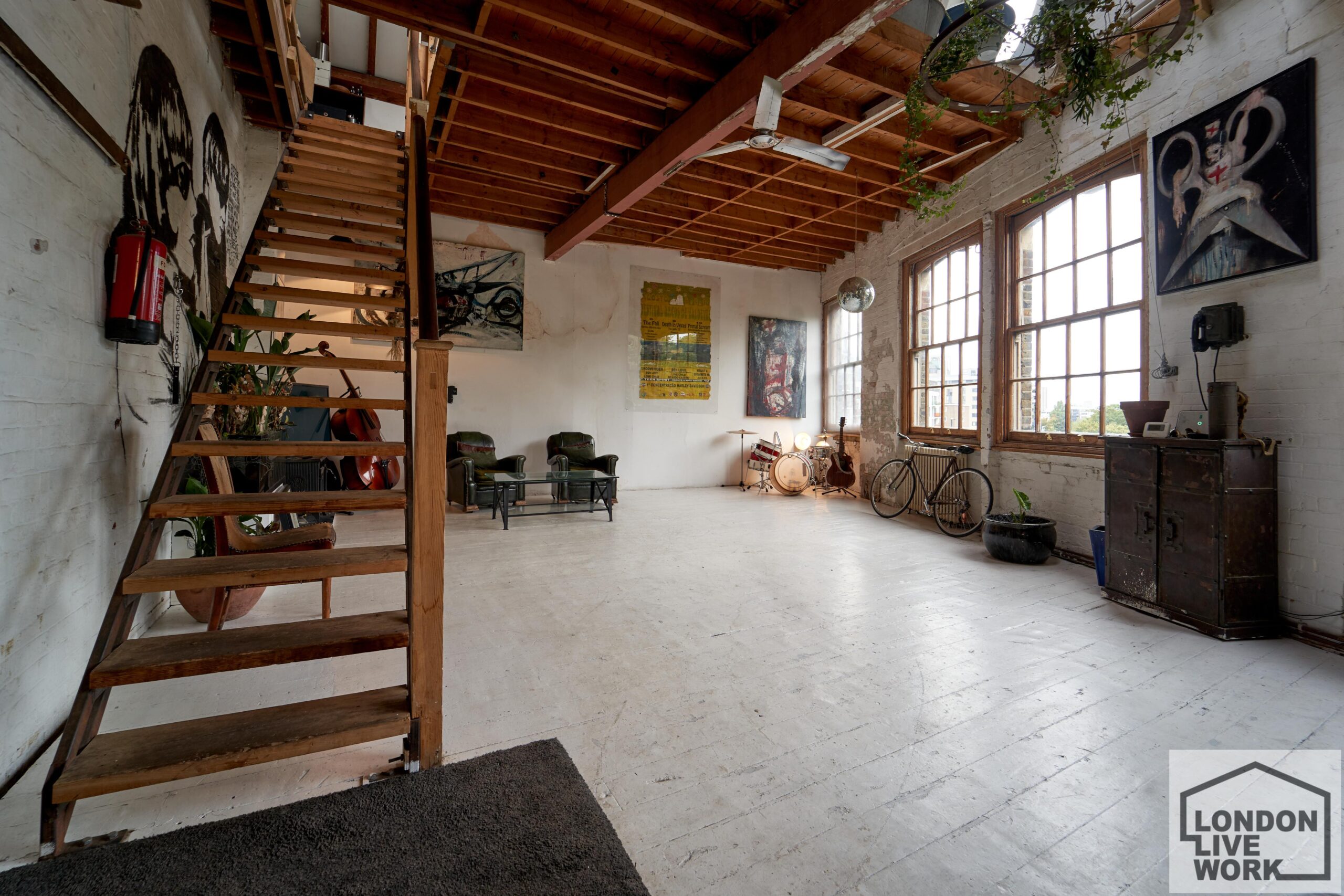 Artists split level studio available to rent in warehouse in The Briggs Building, Shoreditch, London N1 – with 24 hour access