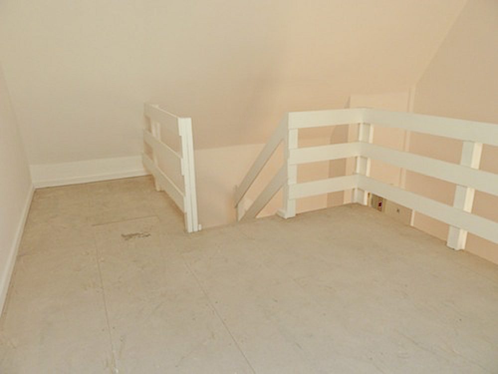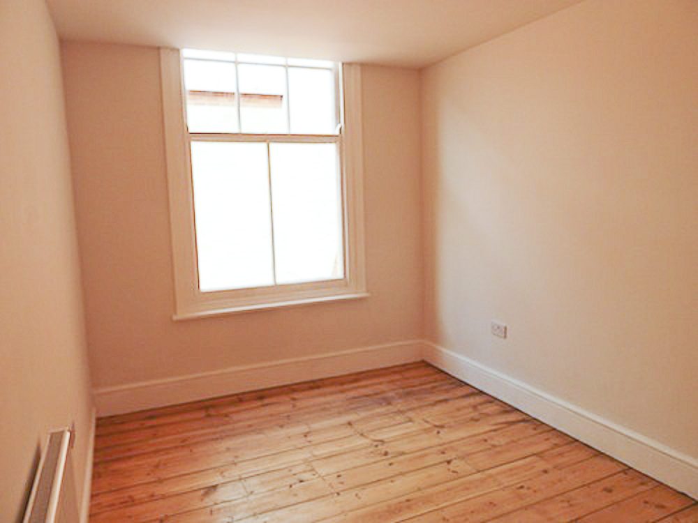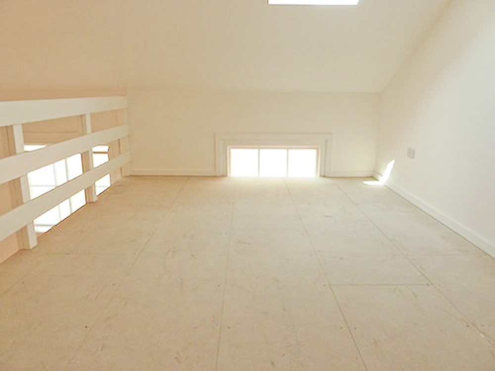 The studio has been painted white, and has a wooden floor throughout.