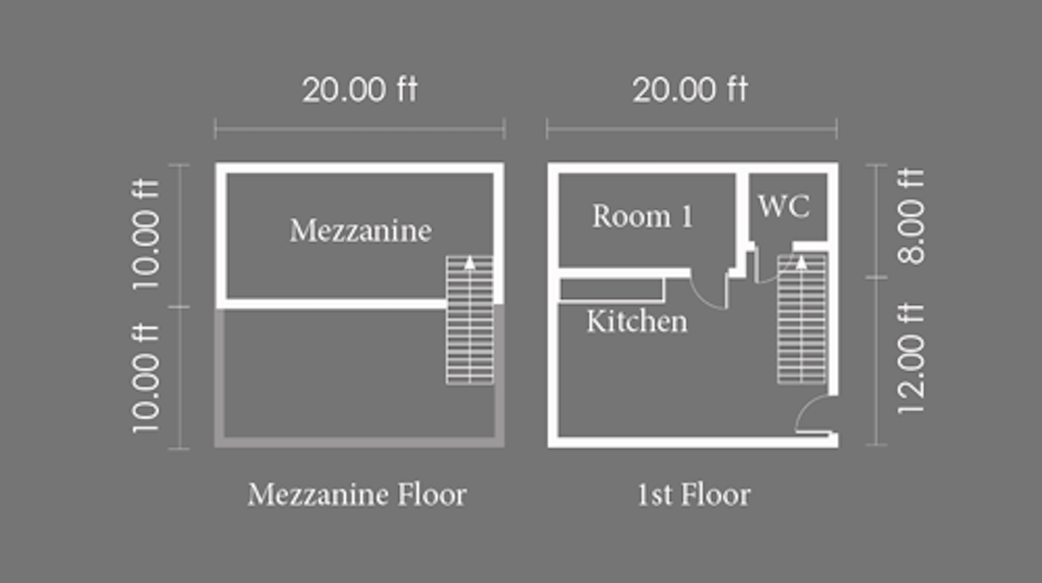 The studio is brand new, and has 400 sq ft 1st floor space plus a 210 sq ft mezzanine area.