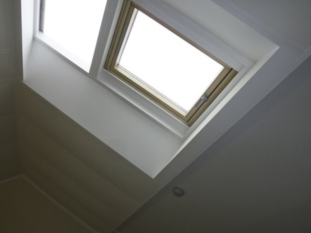 The unit is 600 sq ft with a 16′ high roof. There are skylights in the roof to let in natural light.