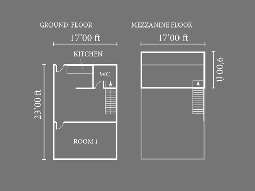 The studio is brand new, and has 440 sq ft ground floor space plus a 160 sq ft mezzanine area.