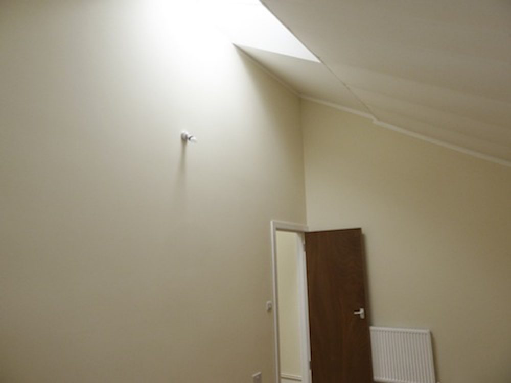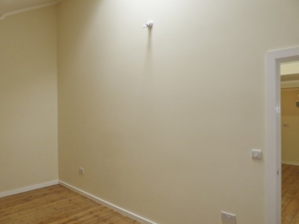 The studio has been painted white, and has a wooden floor throughout.
