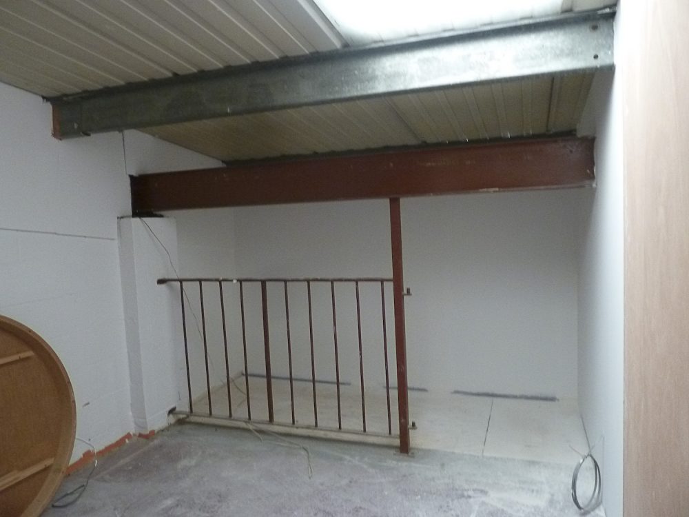 The unit has bright white painted walls and comes with concrete flooring electricity and lighting and a skylight.