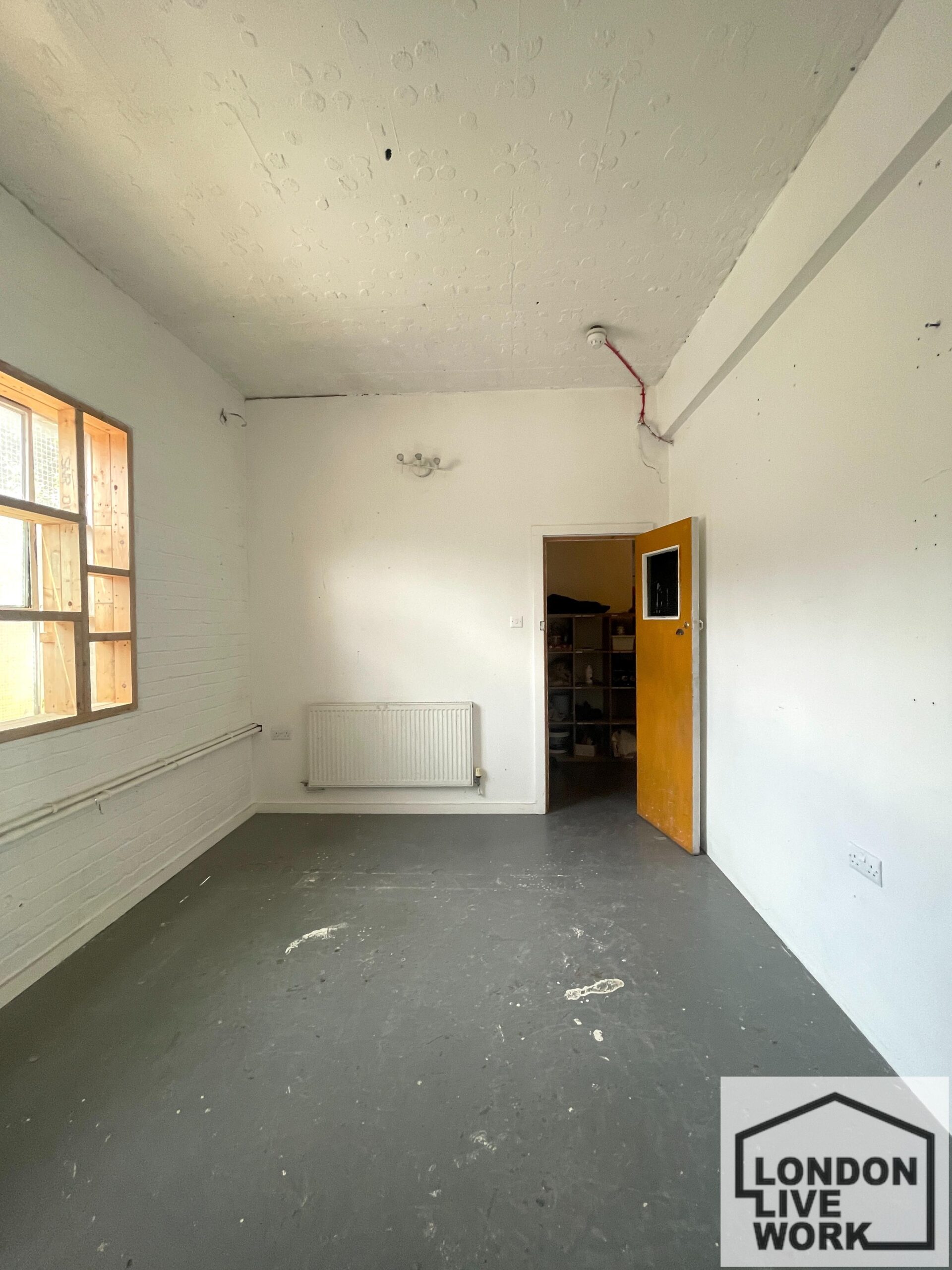A bright and airy artist studio is available to rent in a converted warehouse on Markfield Road, just a short walk from Seven Sisters and Tottenham Hale stations. Situated on the 1st floor, the space offers 125 sq ft with white walls and a large window providing plenty of natural light – perfect for creatives who thrive in an inspiring work environment.
