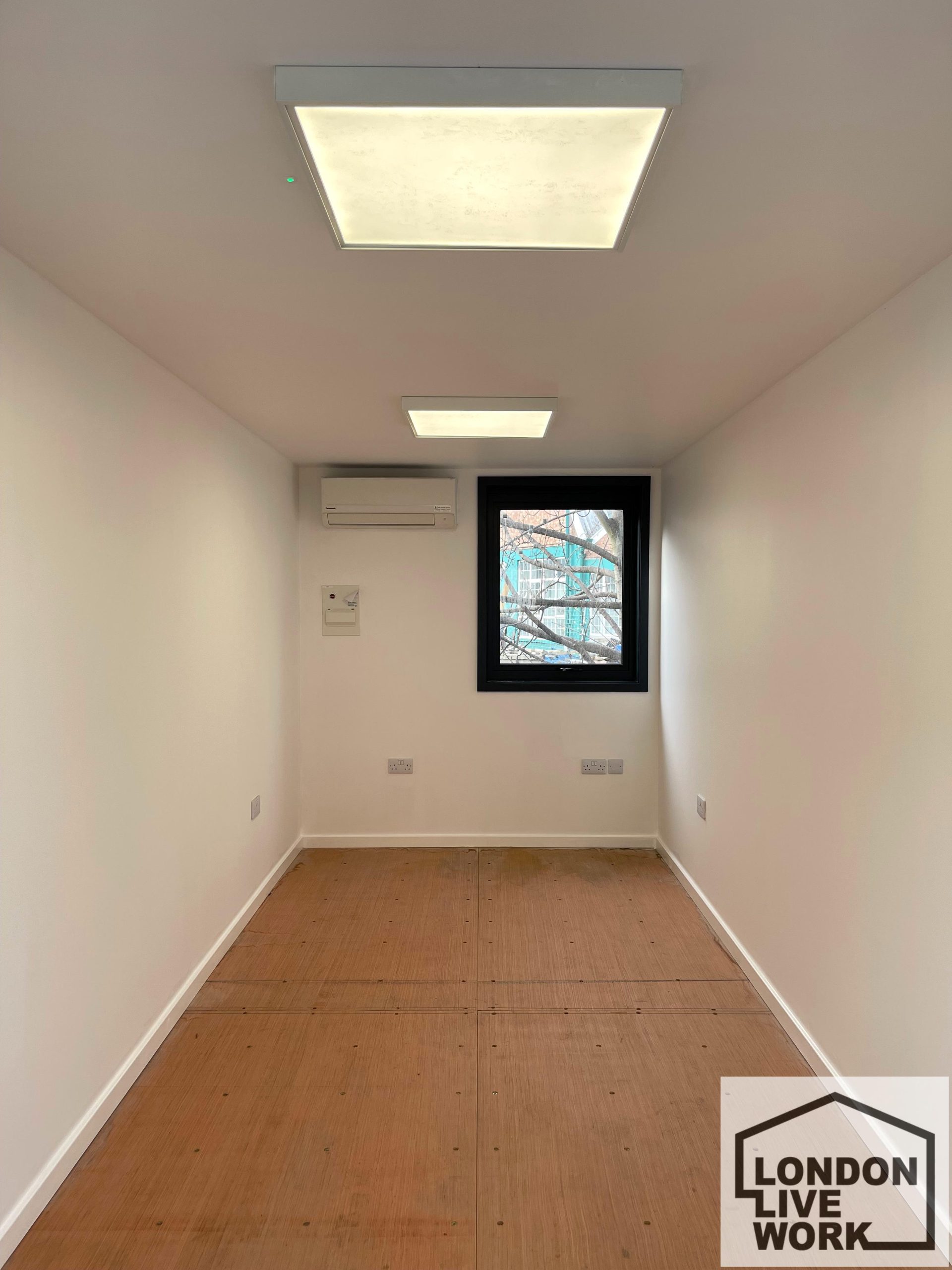 The unit has 24 hour access, an electric roller shutter with double glazed doors behind it, air-conditioning and heating, high speed wifi, 5 double plug sockets, LED lighting, economical air source heat pumps and a wooden floor.
