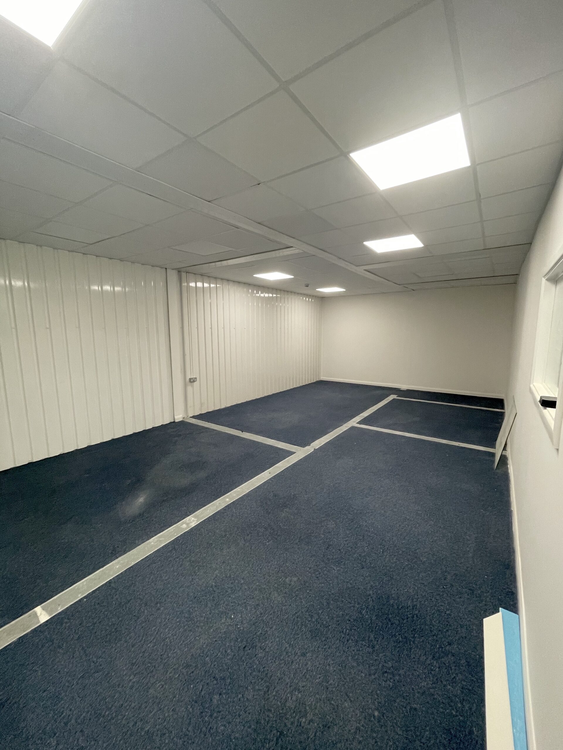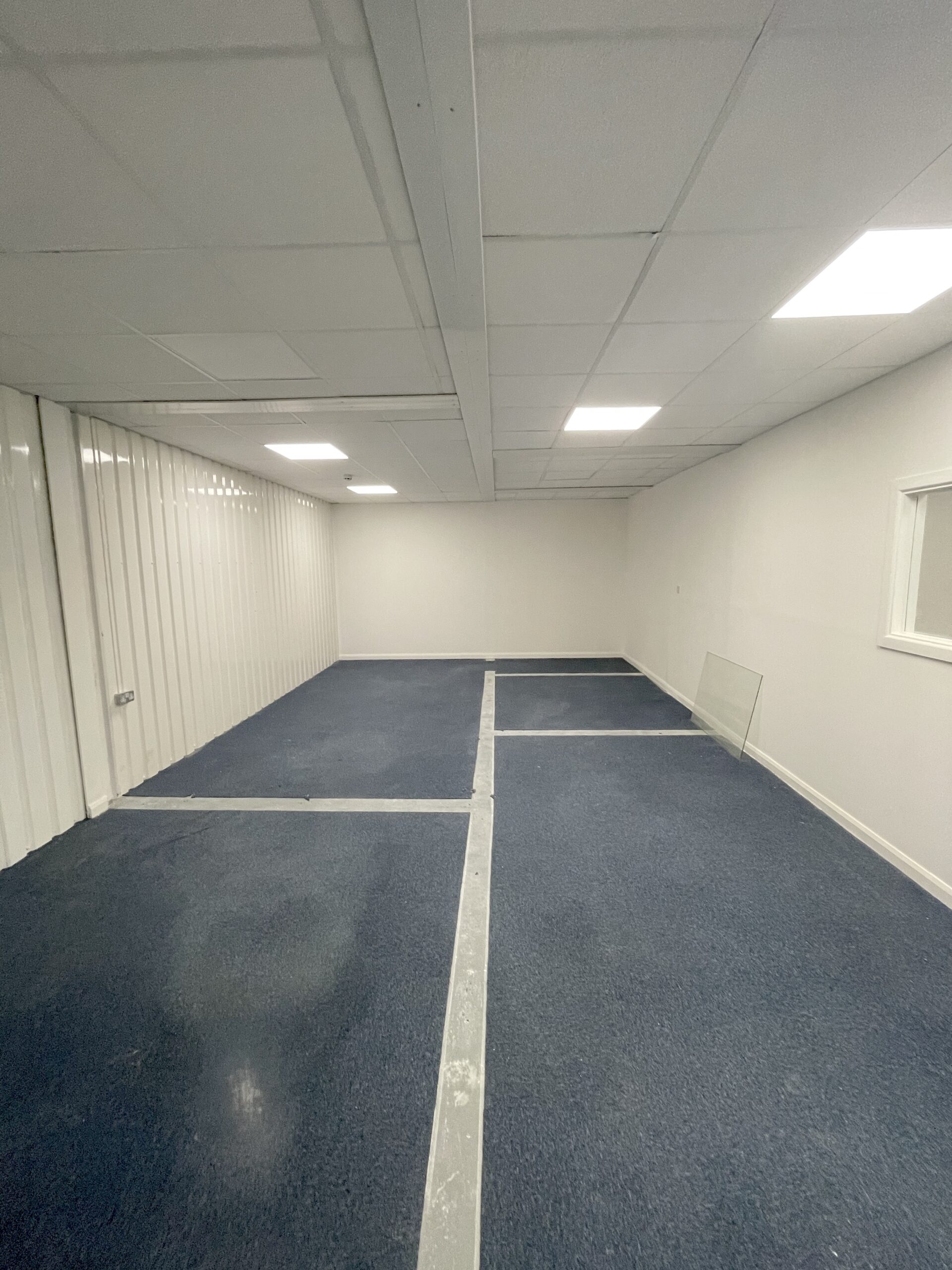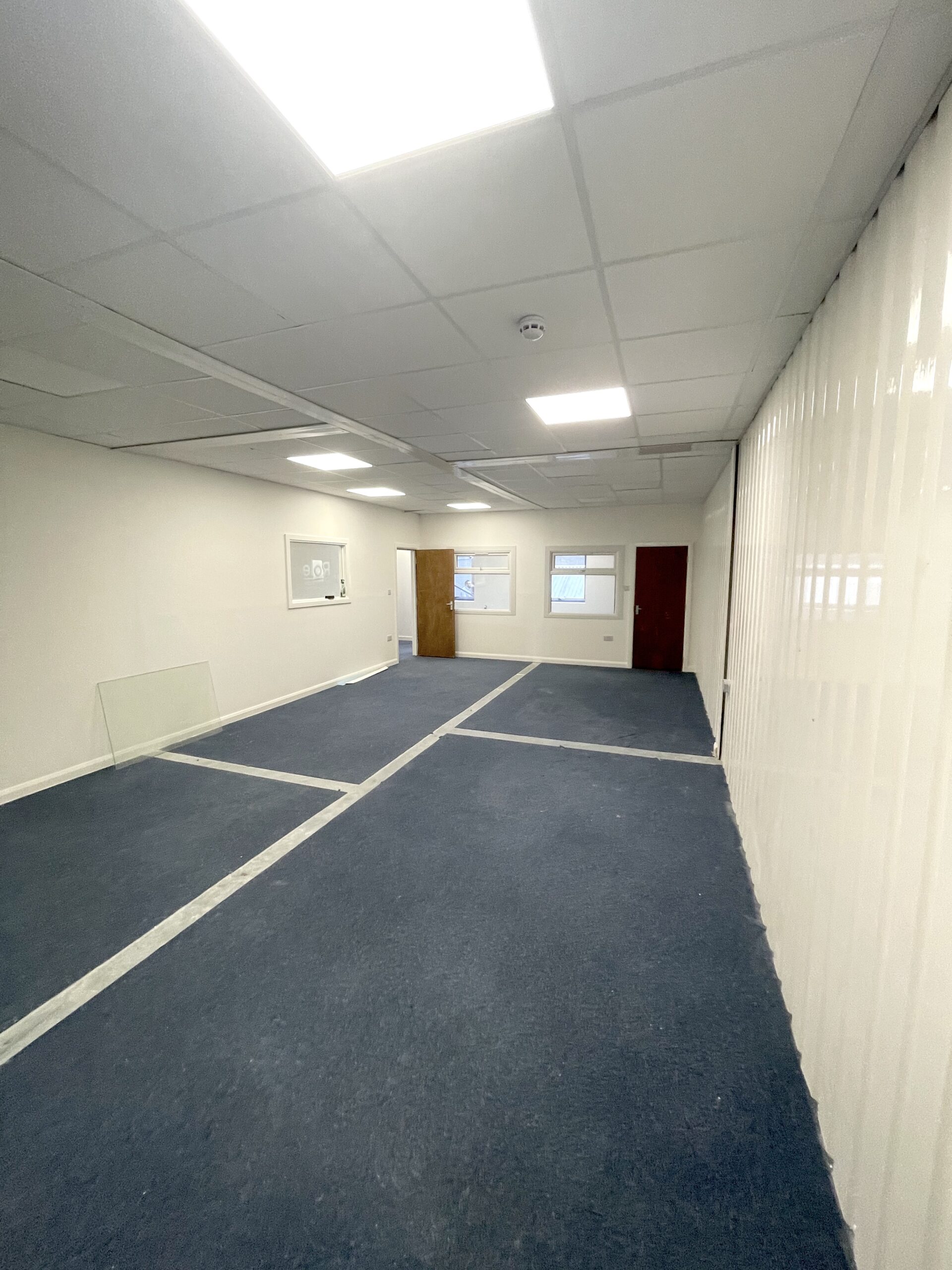 The entire unit has bright white walls, double glazed windows for lots of natural light, lino laminate / concrete flooring and a suspended ceiling height of 8ft and a ceiling height of 12ft.