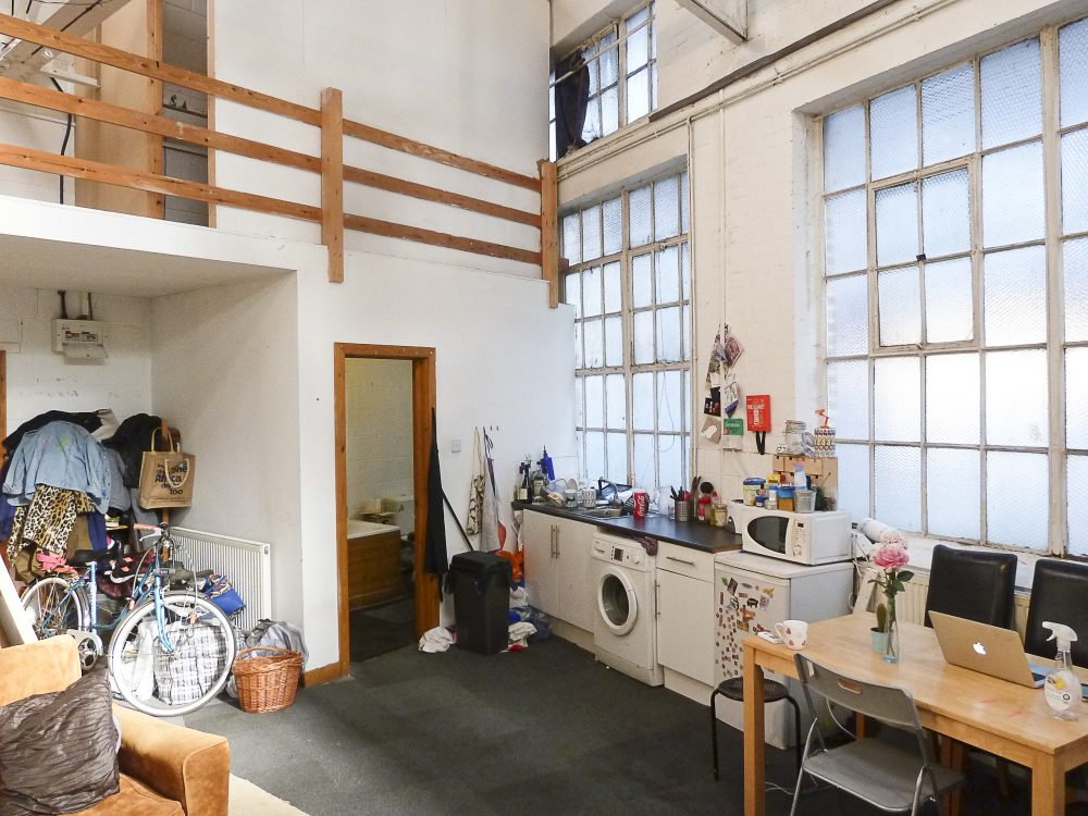 Ground floor live work unit available in converted Victorian warehouse Studio made up of a large open area 4 bedrooms, bathroom, kitchen and a big mezzanine floor.
