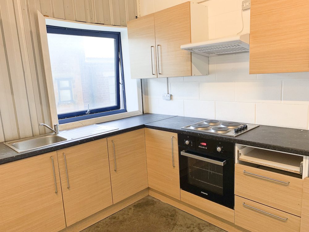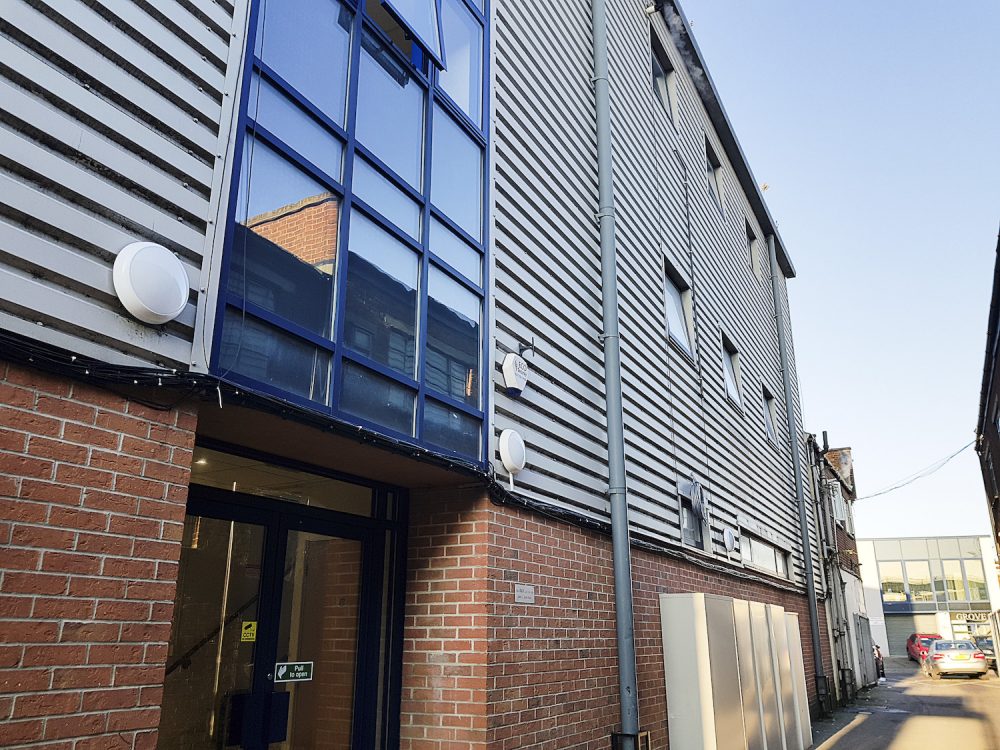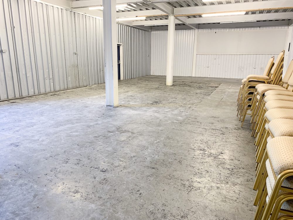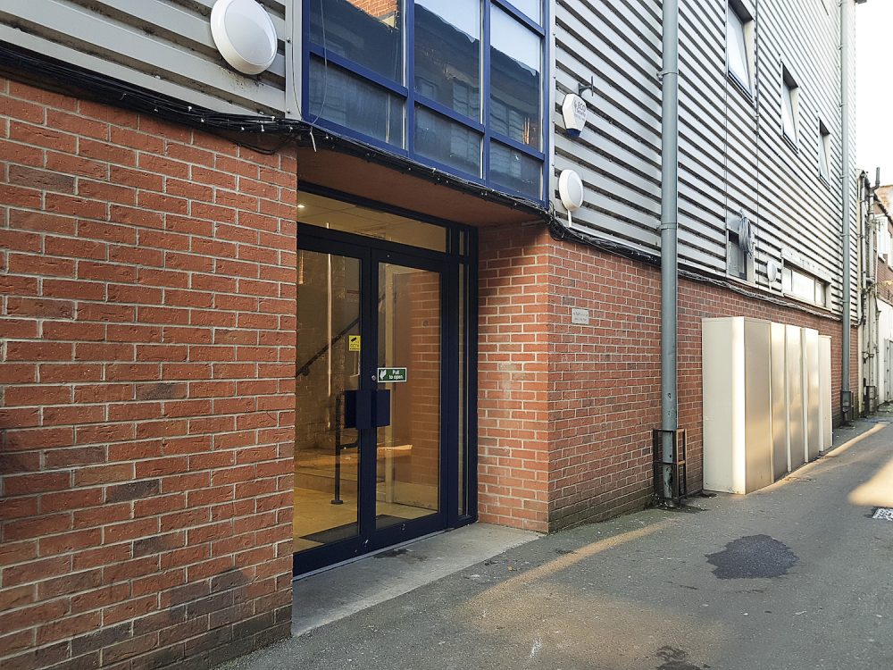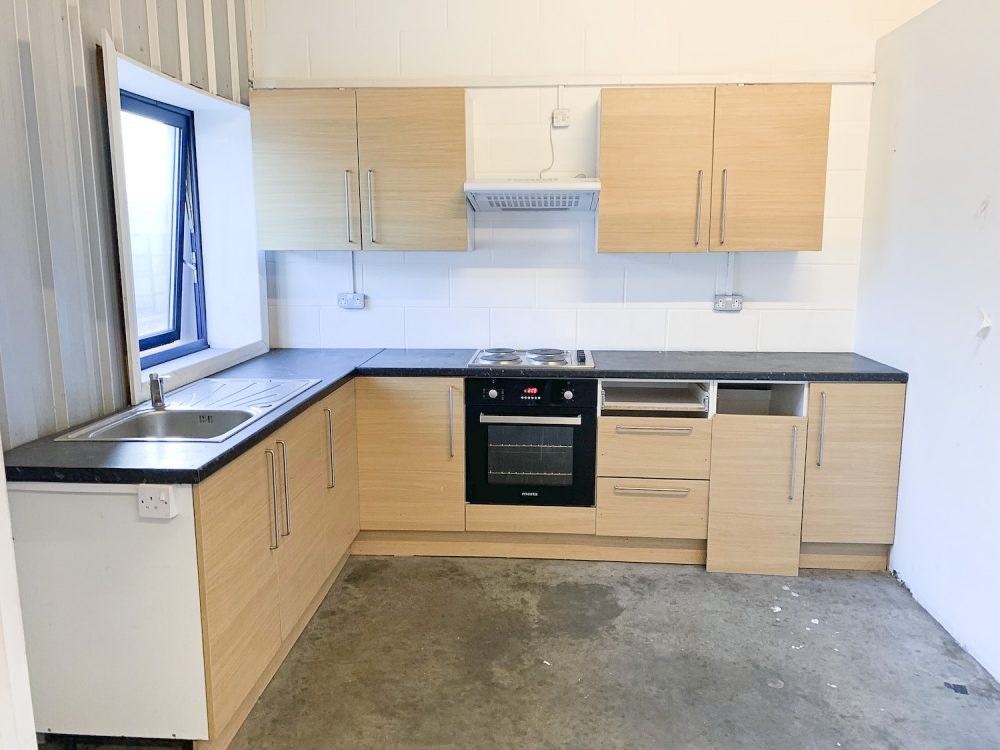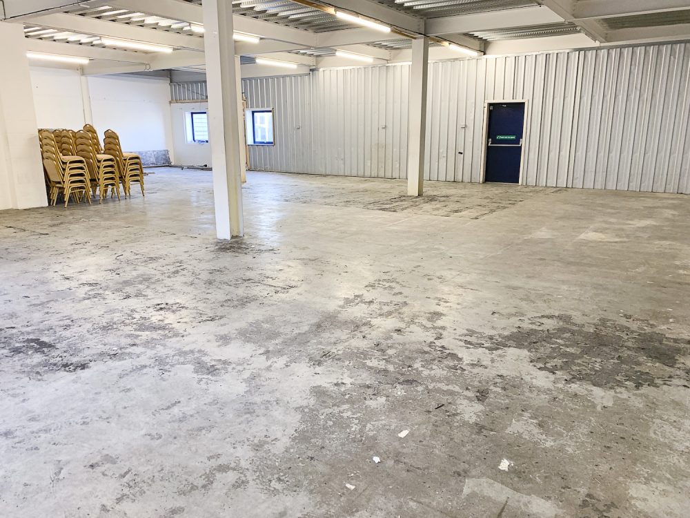 The studio has bright white walls an open work space area, double glazed windows for lots of natural light, dark grey concrete flooring and a ceiling height of 12ft.