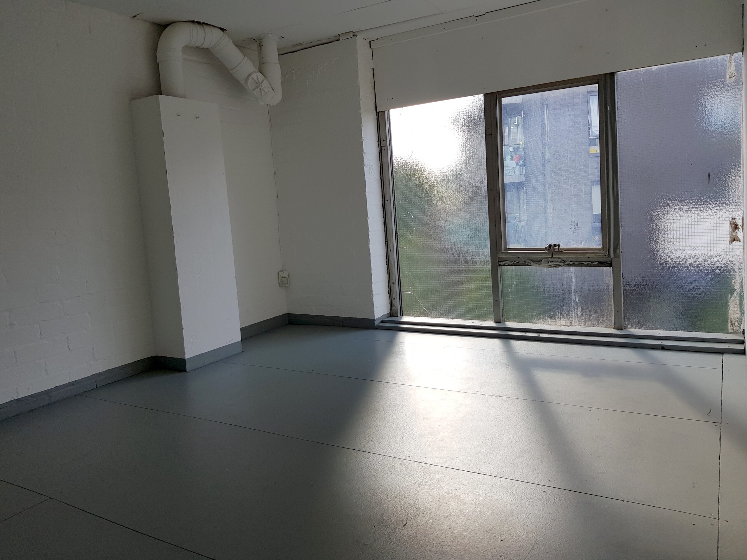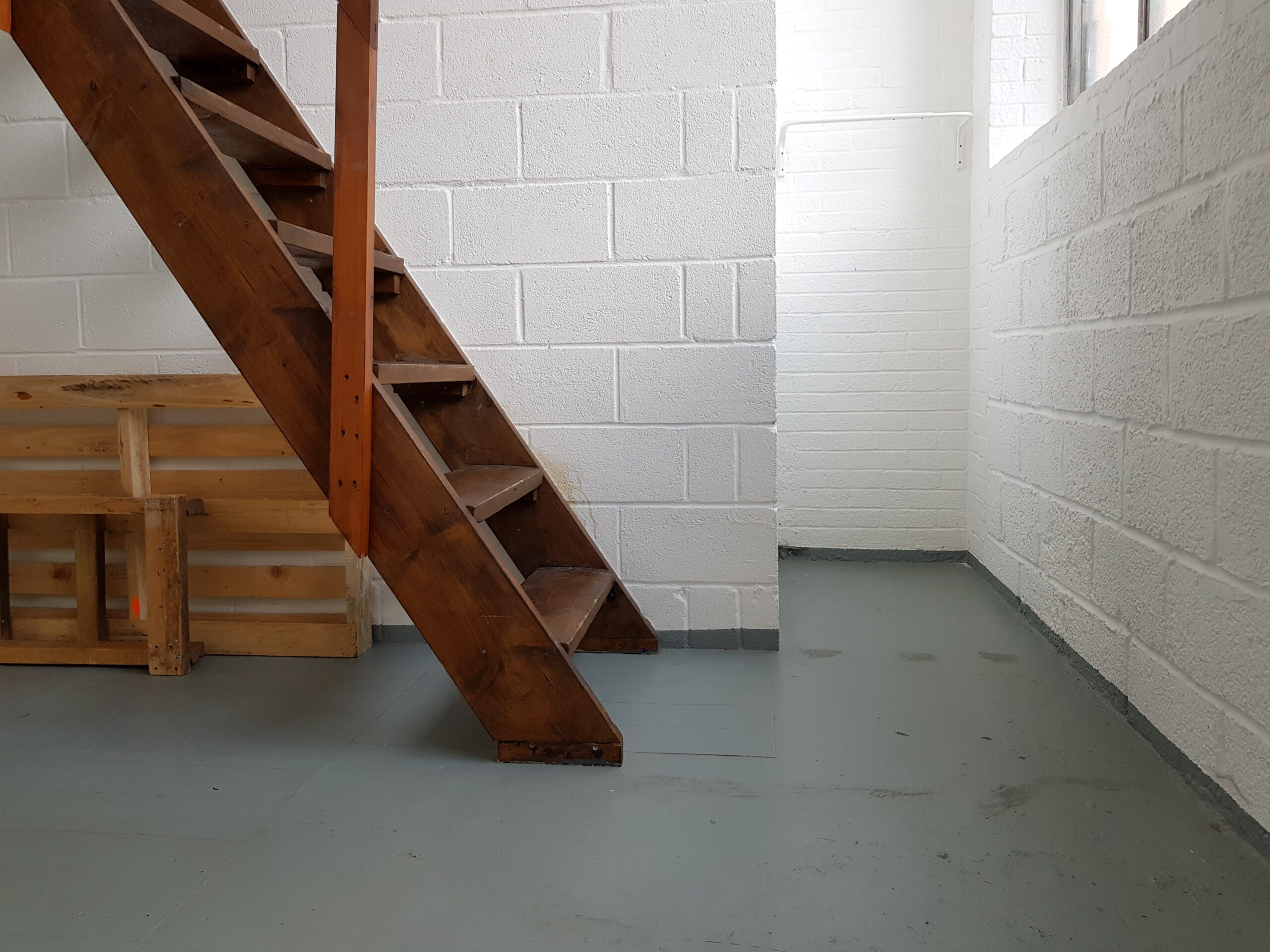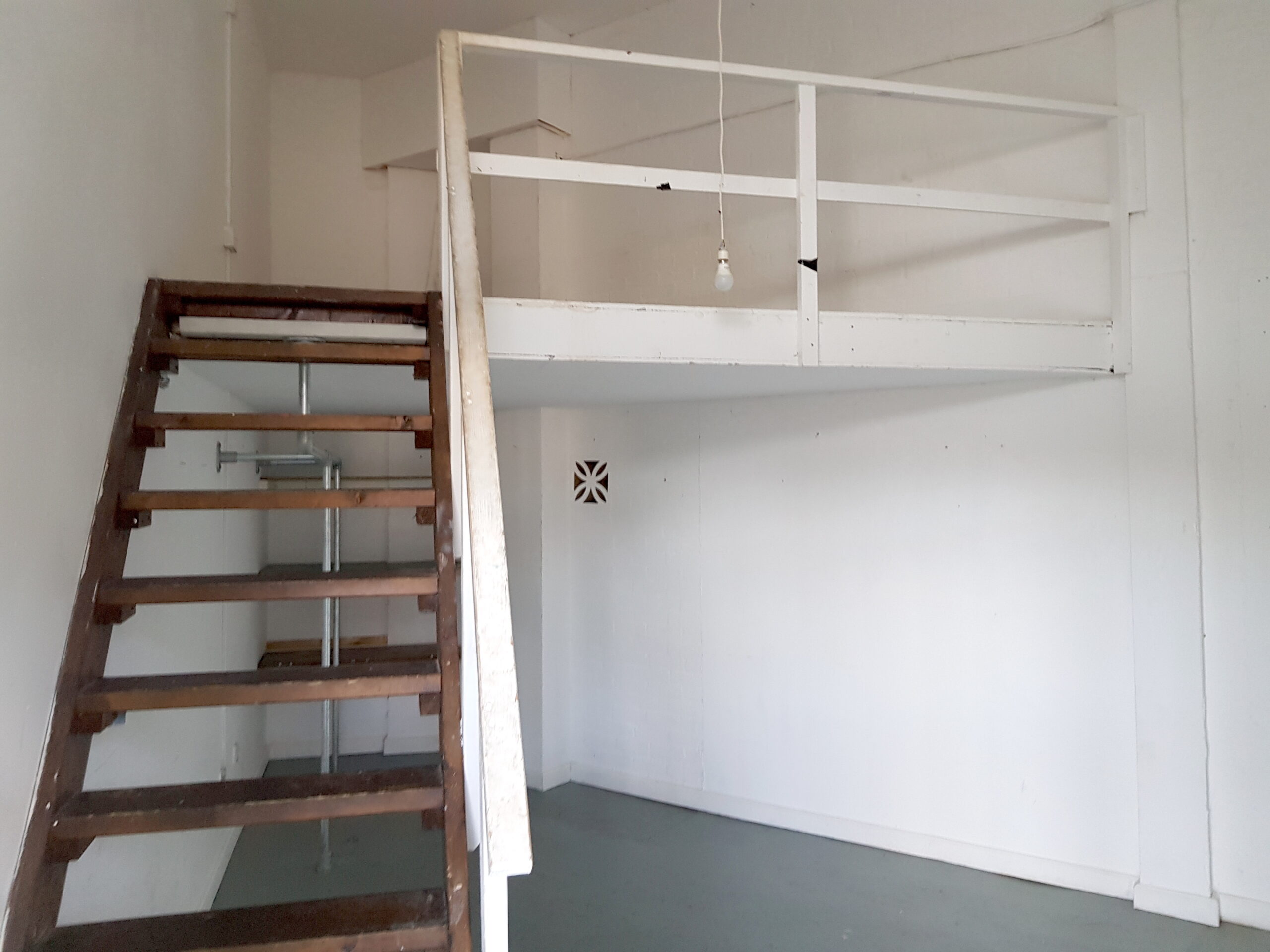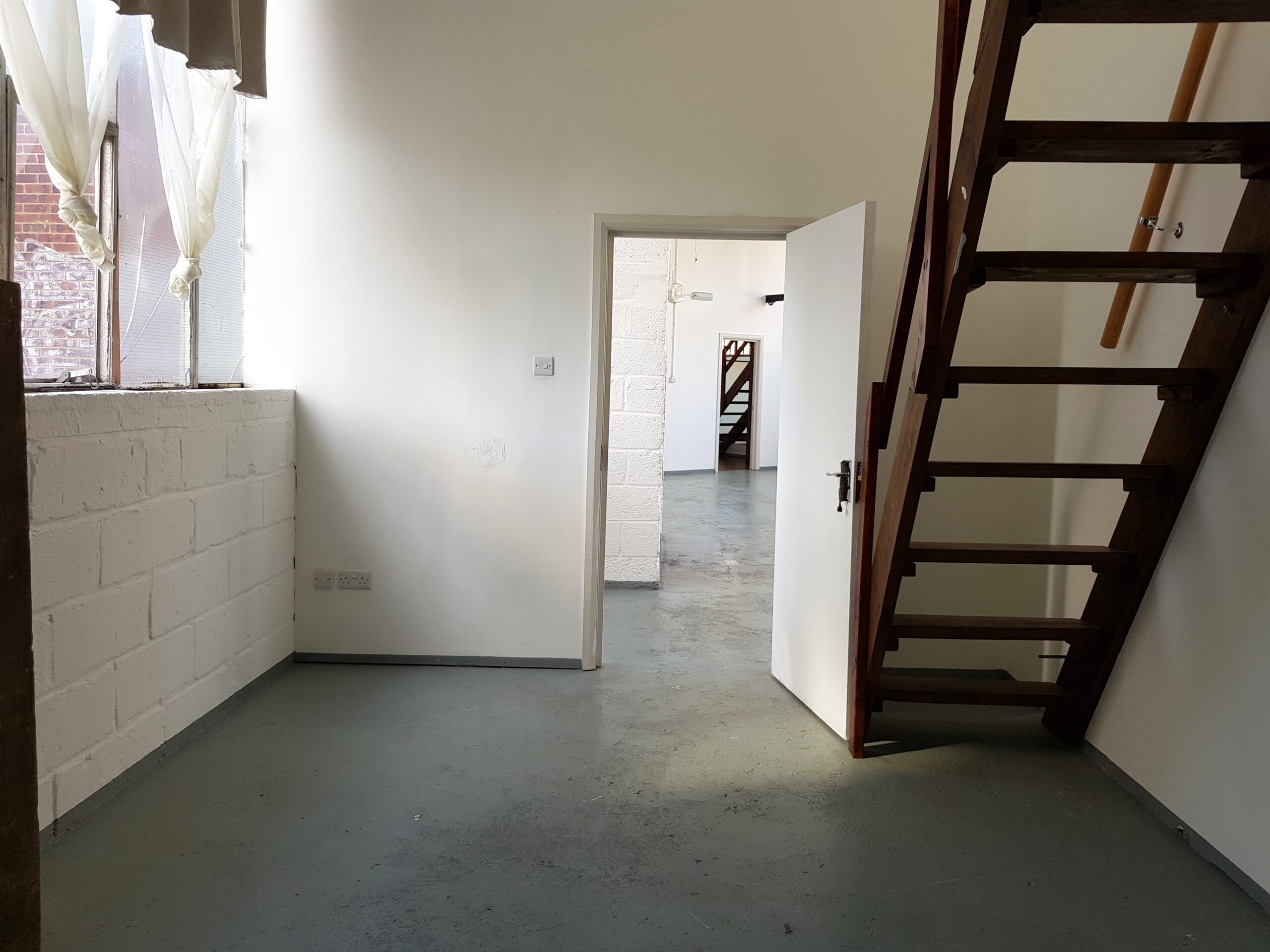 The unit also has 5 rooms set off the main area, each with it’s own mezzanine floor, all the rooms are spacious, and painted white, with grey concrete floors. (Please note, one of the rooms has no natural light).