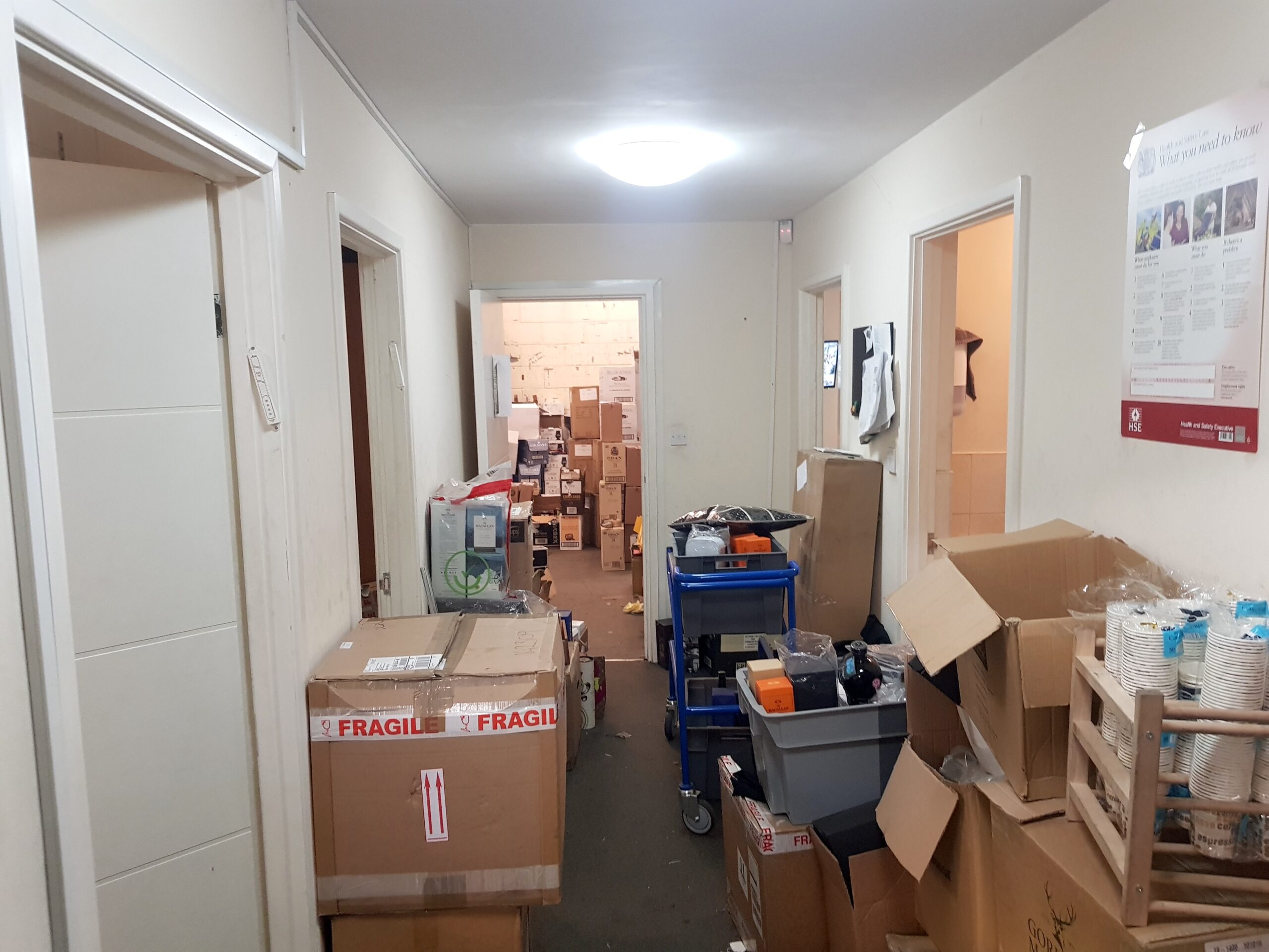 2. – 1800 sq ft open area, with 4 large windows (rooms can be put in) – the windows all have steel roller shutters for security. There is a separate entrance leading into this area