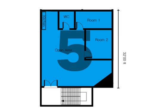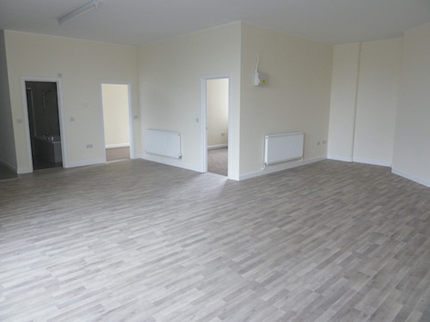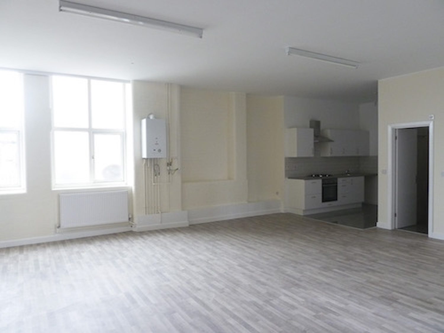 Space consists of a huge open area, open plan kitchen, 2 separate rooms, separate tiled bath / shower / WC