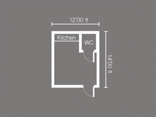 The studio has its own WC and a kitchen area.