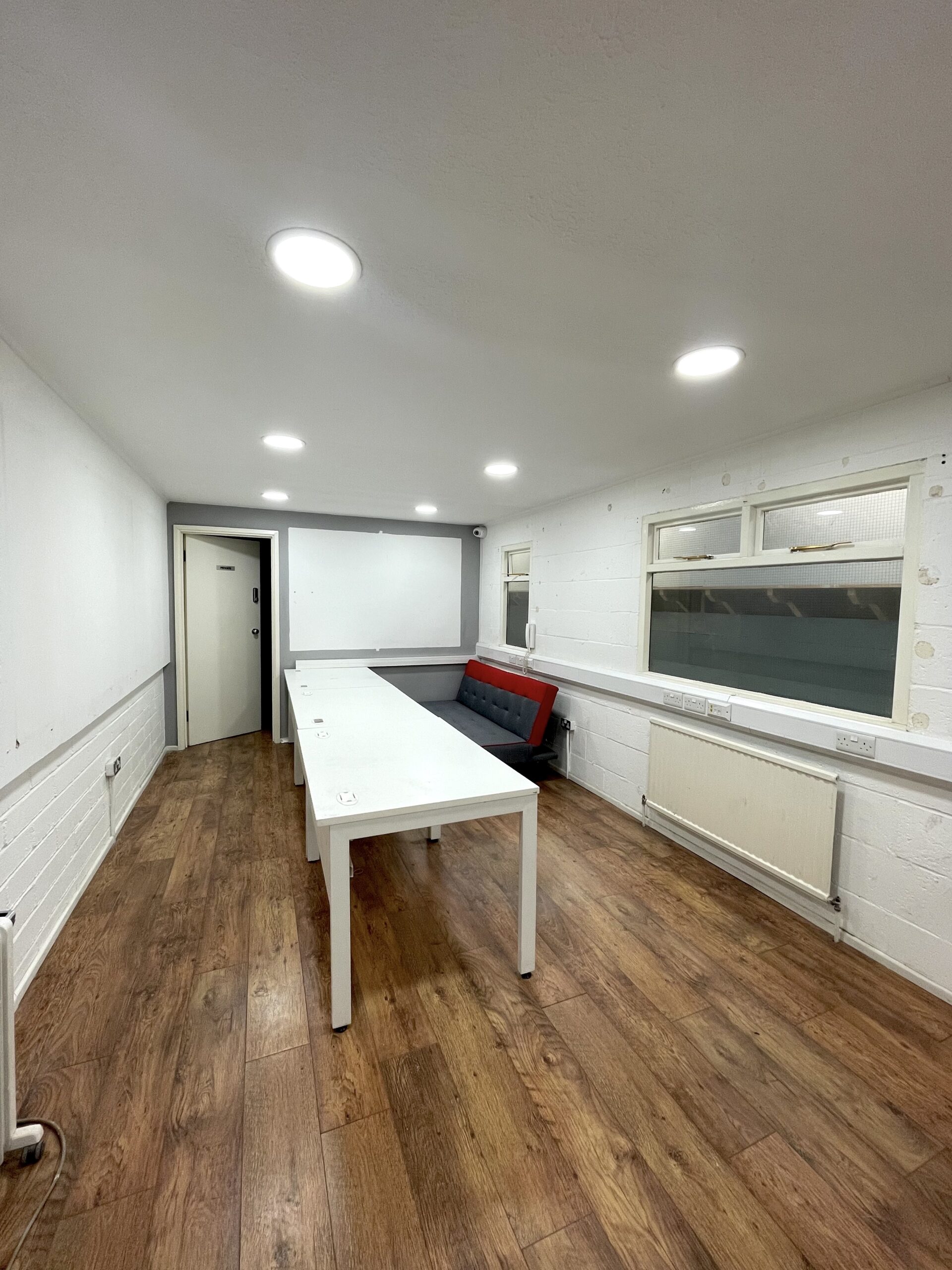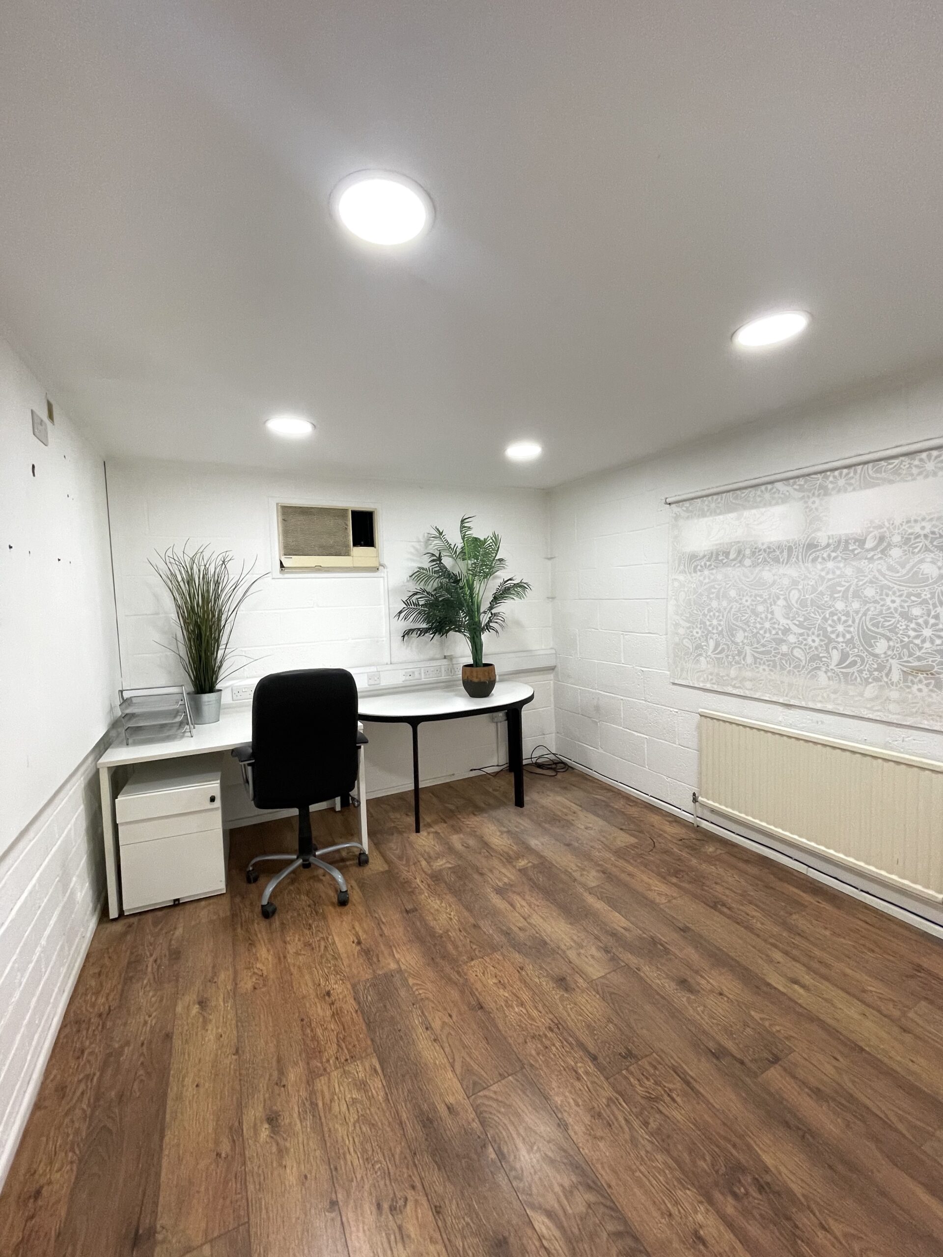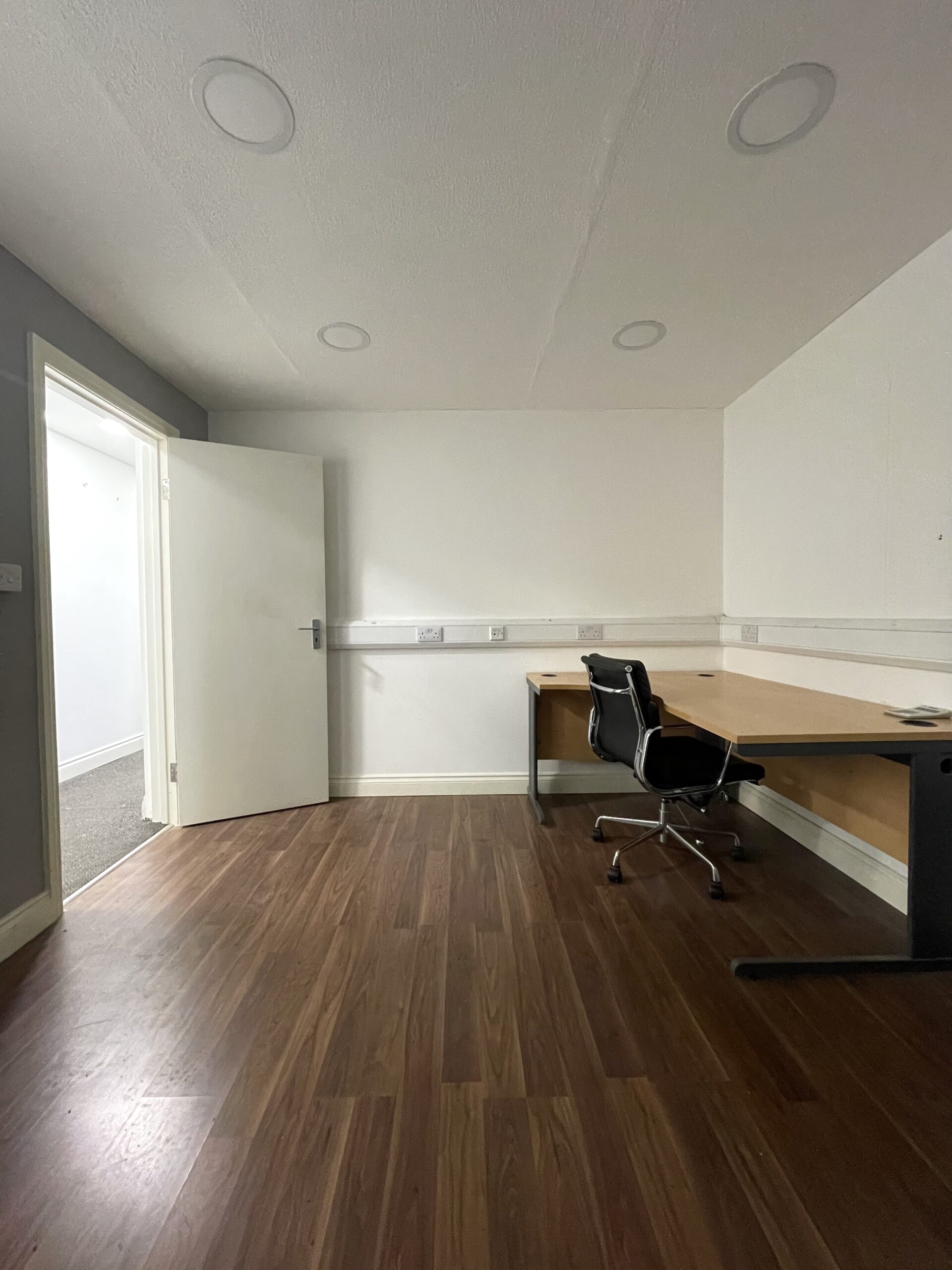The unit has 3 offices / rooms on the ground floor, plus a large room, and a separate storage area on the first floor. There is wood flooring in the ground floor offices and hallway.