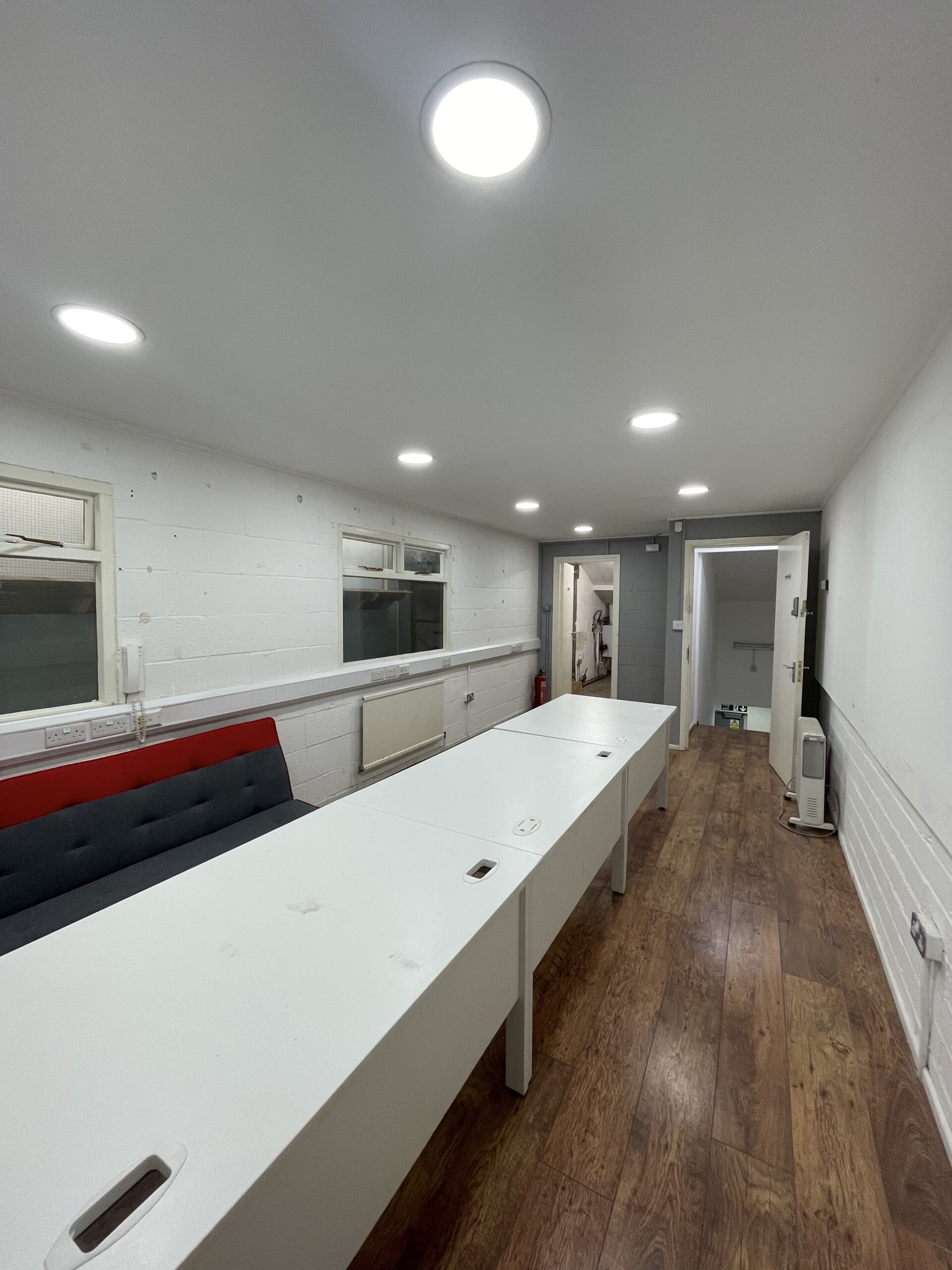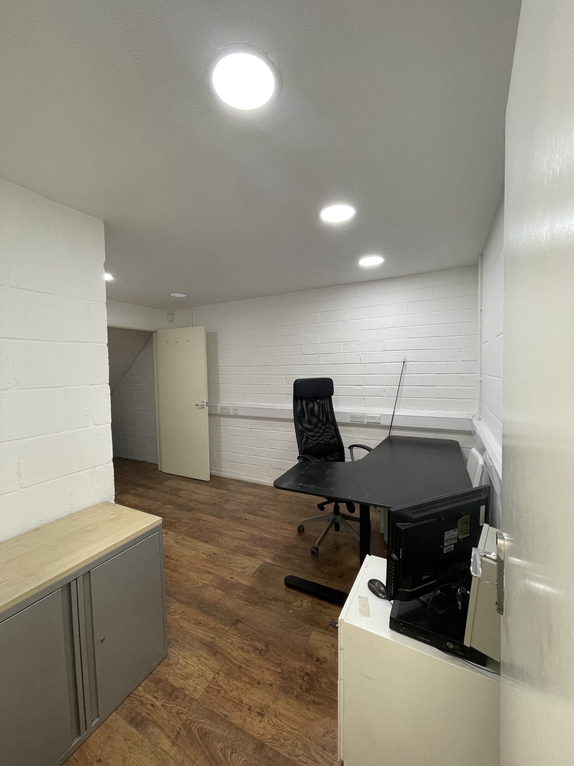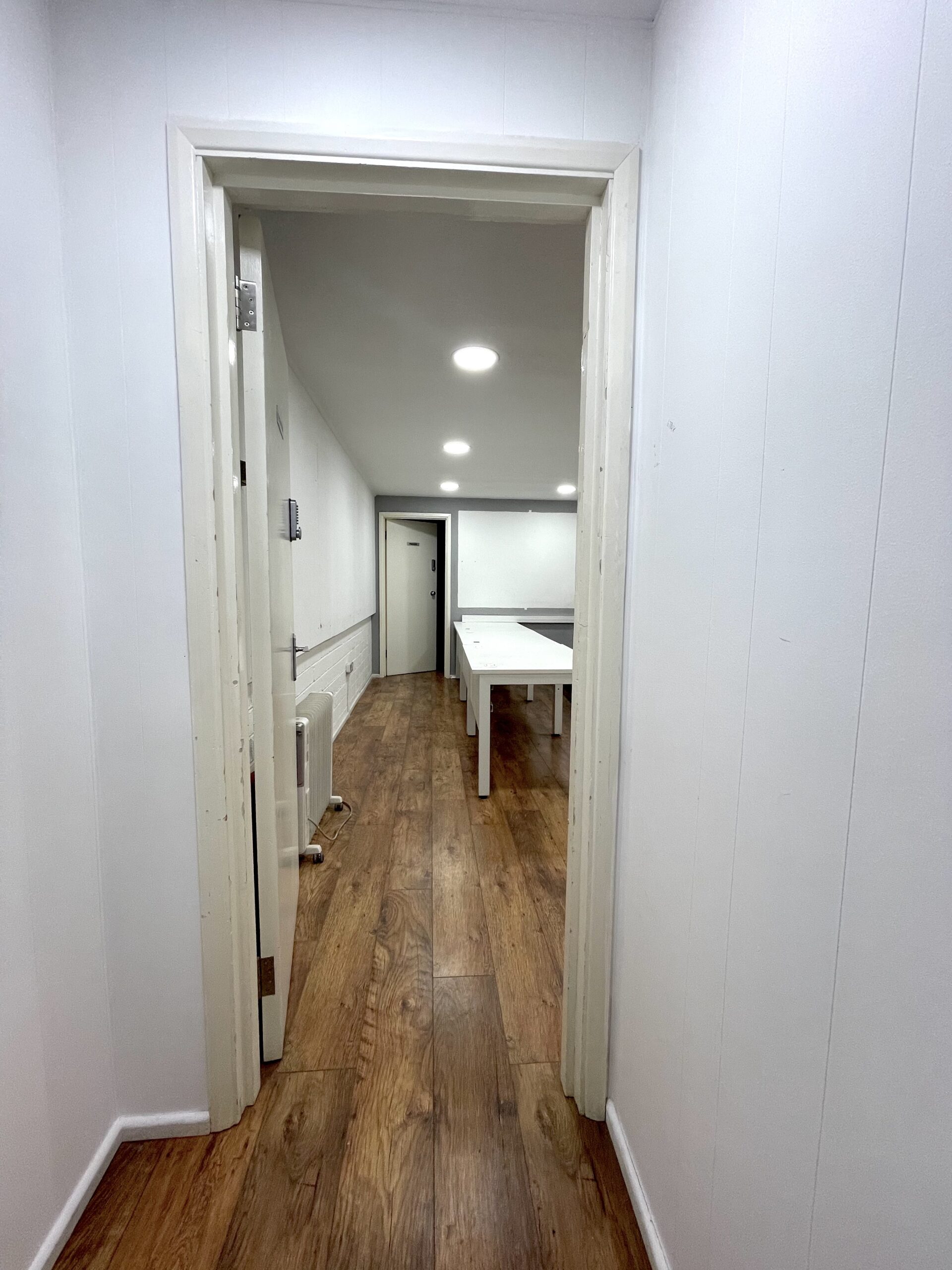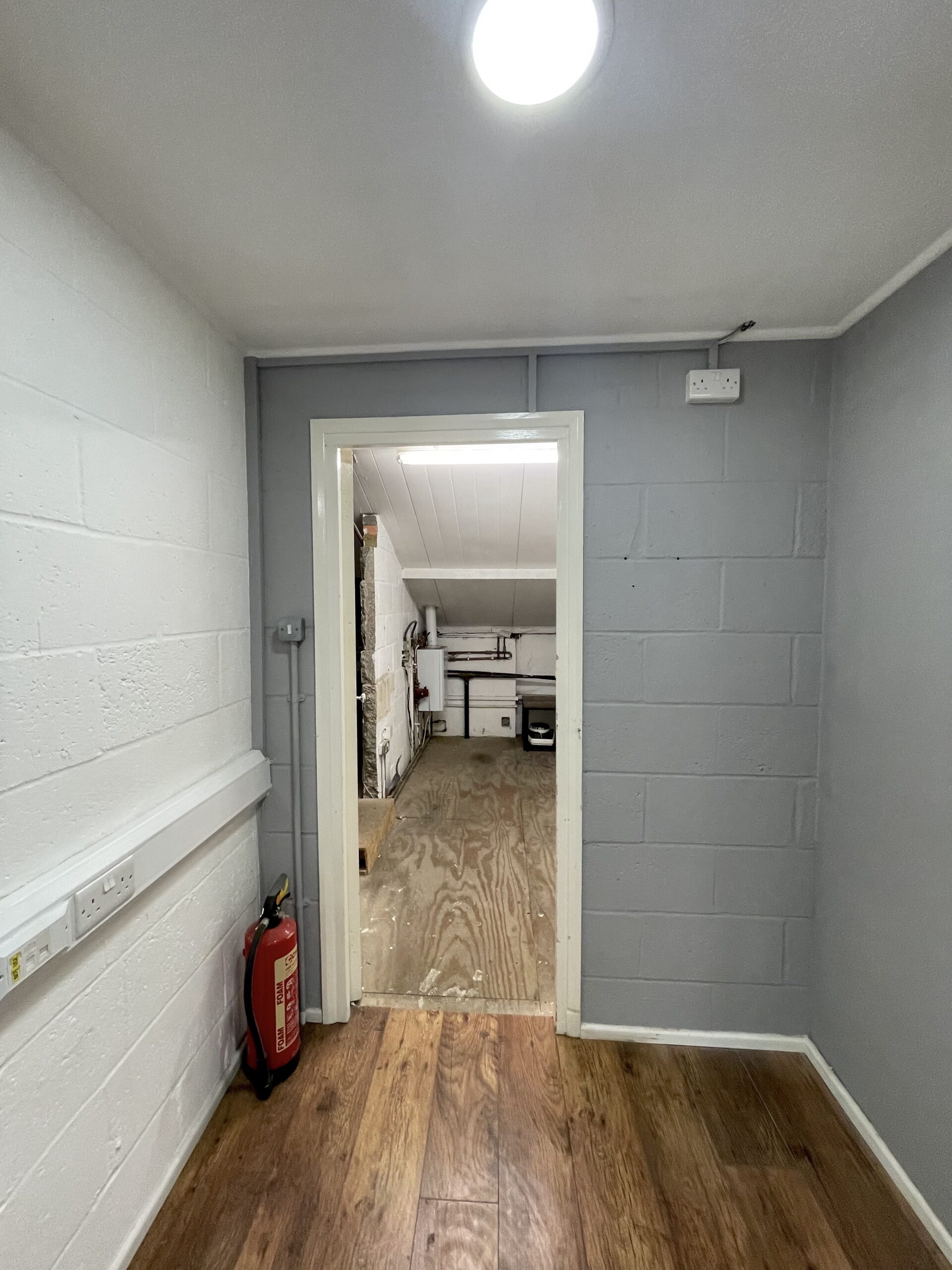 The unit has 3 offices / rooms on the ground floor, plus a large room, and a separate storage area on the first floor. There is wood flooring in the ground floor offices and hallway.