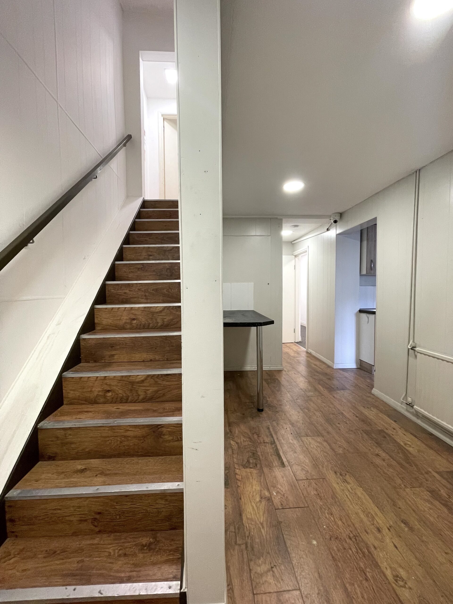 Live work style warehouse unit (split level – ground and first floor) with 3 rooms and open area in converted warehouse available for rent.