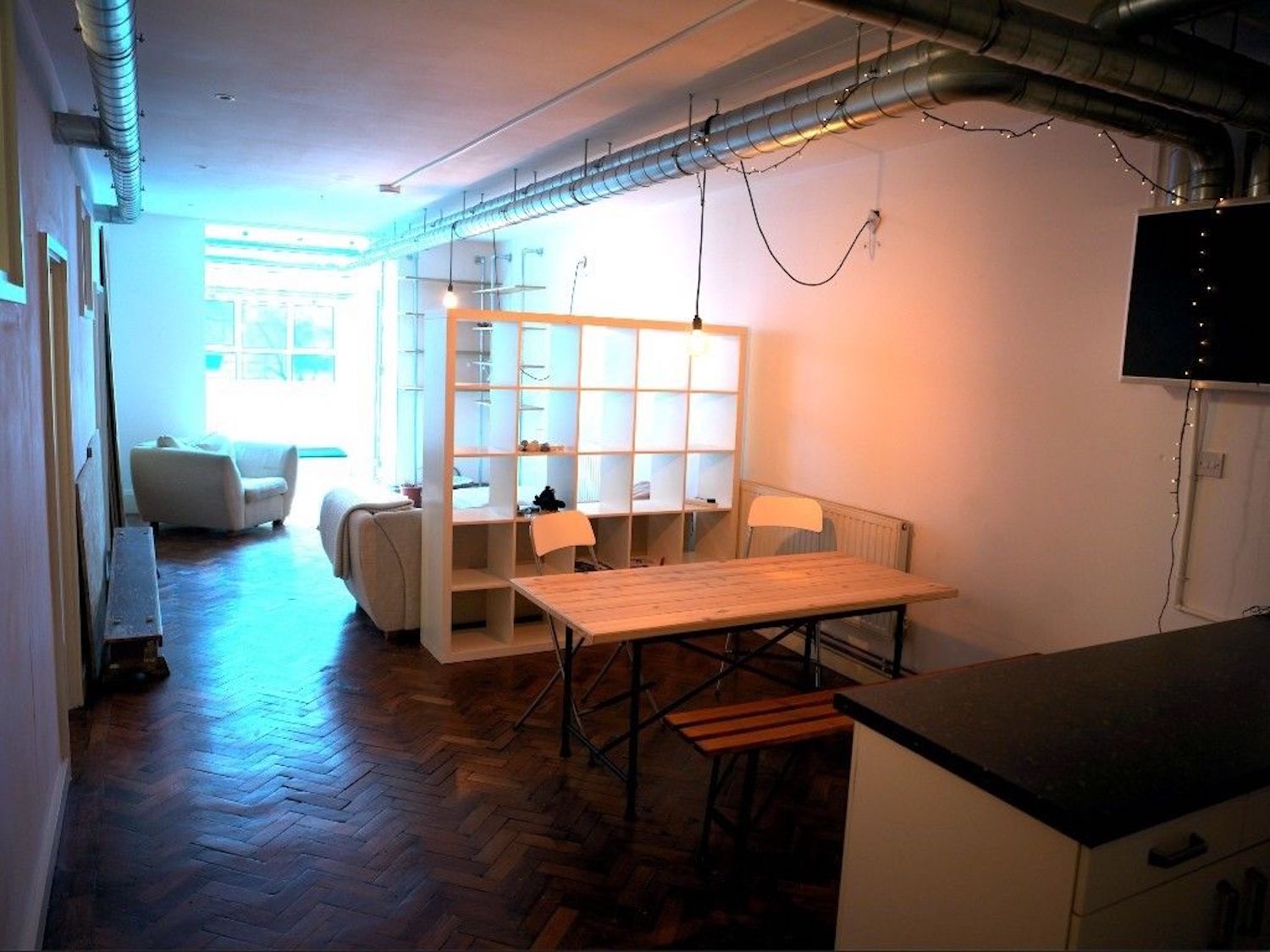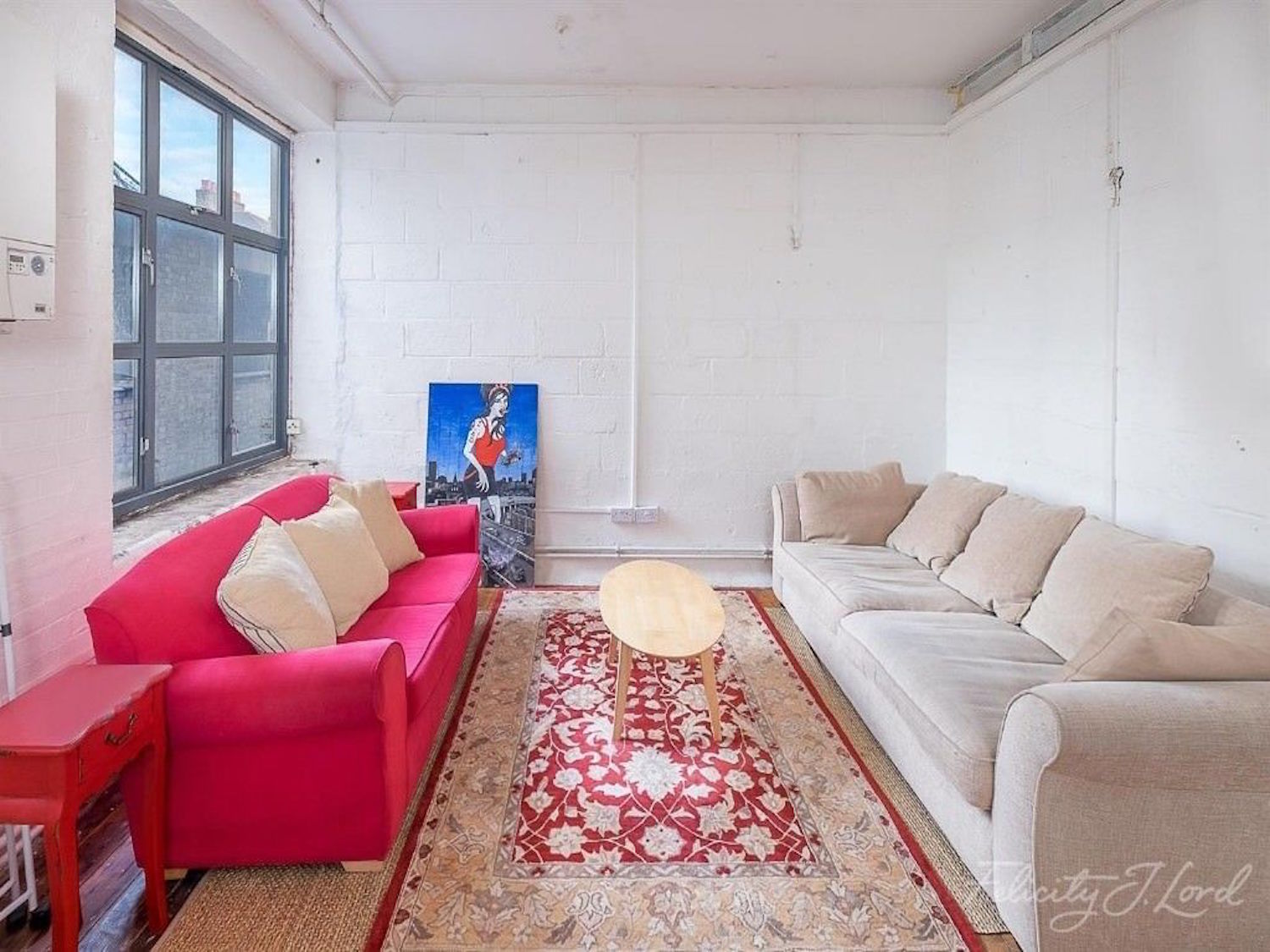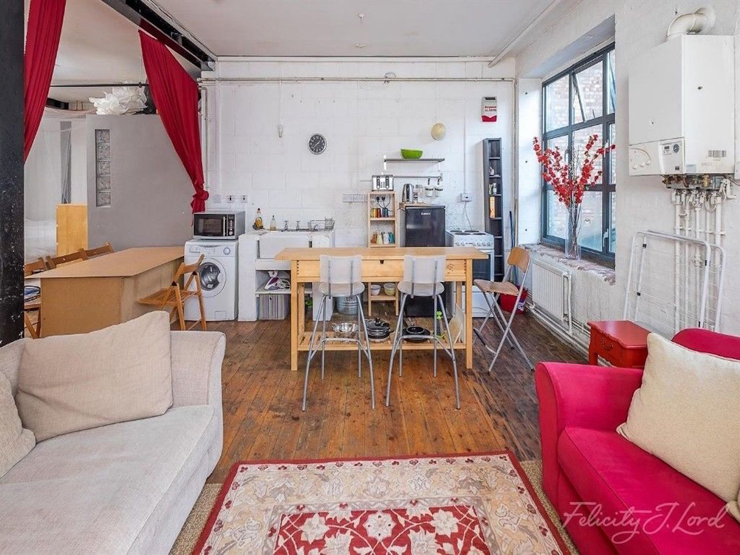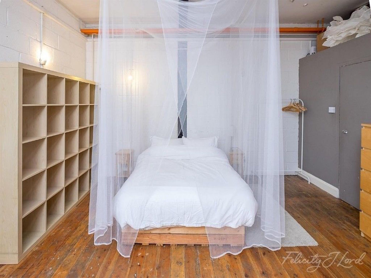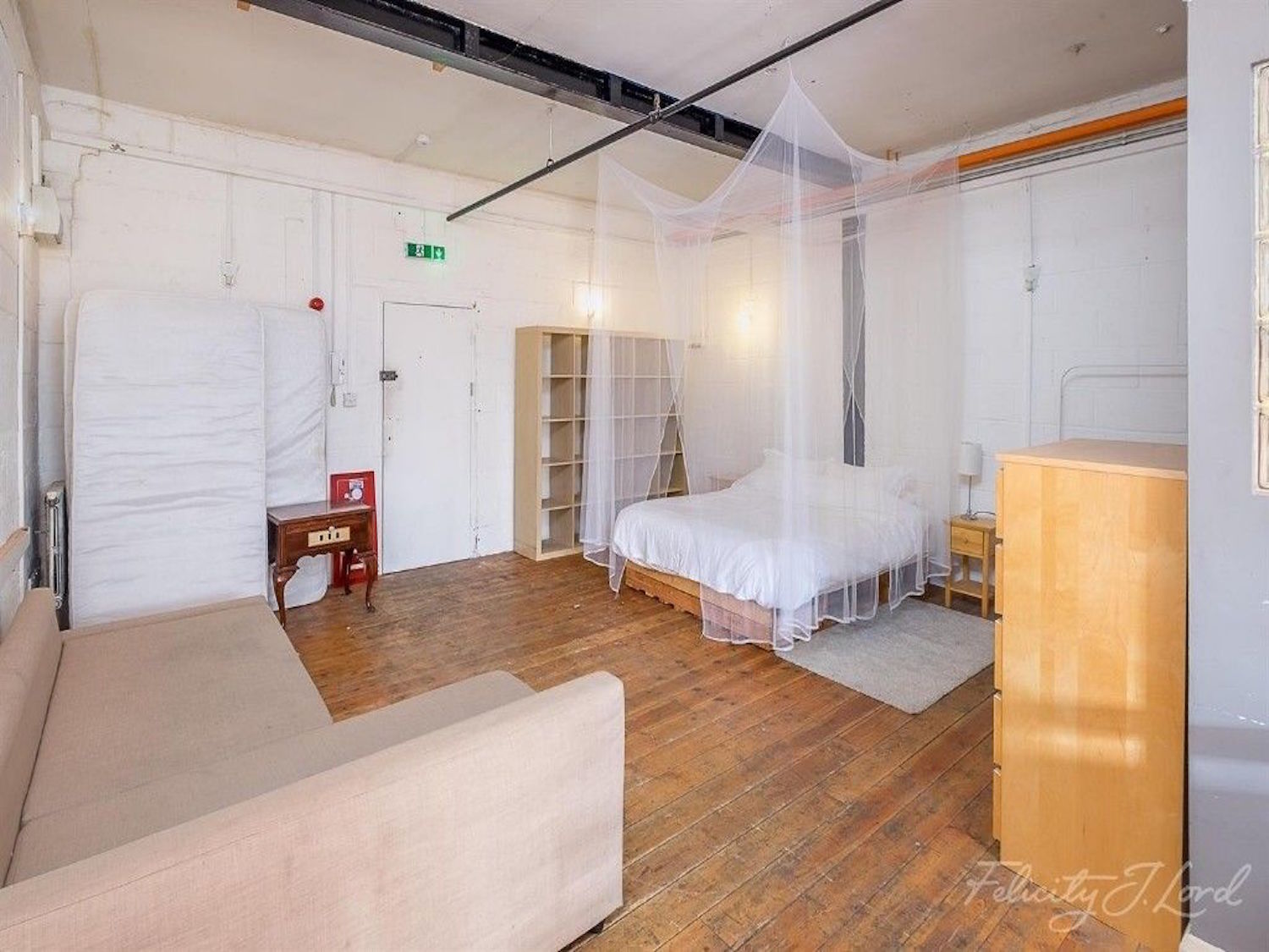 Live work unit available to rent in converted Victorian warehouse, with one large bedroom, large open area, kitchen area and bathroom. Hackney E9