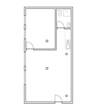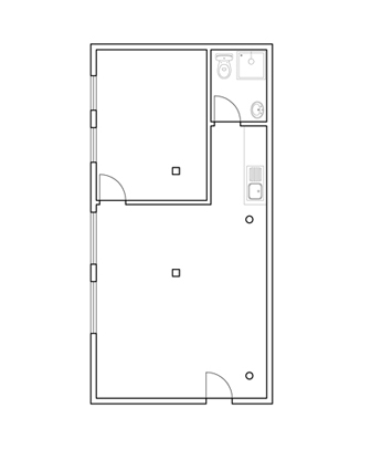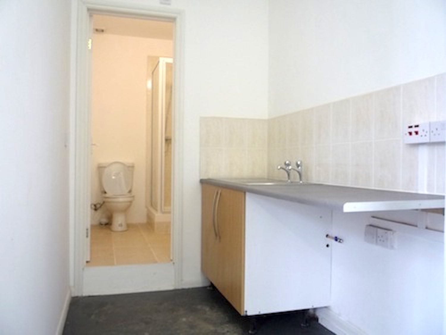 600 sq ft ground floor warehouse unit available with 1 room and large open area.