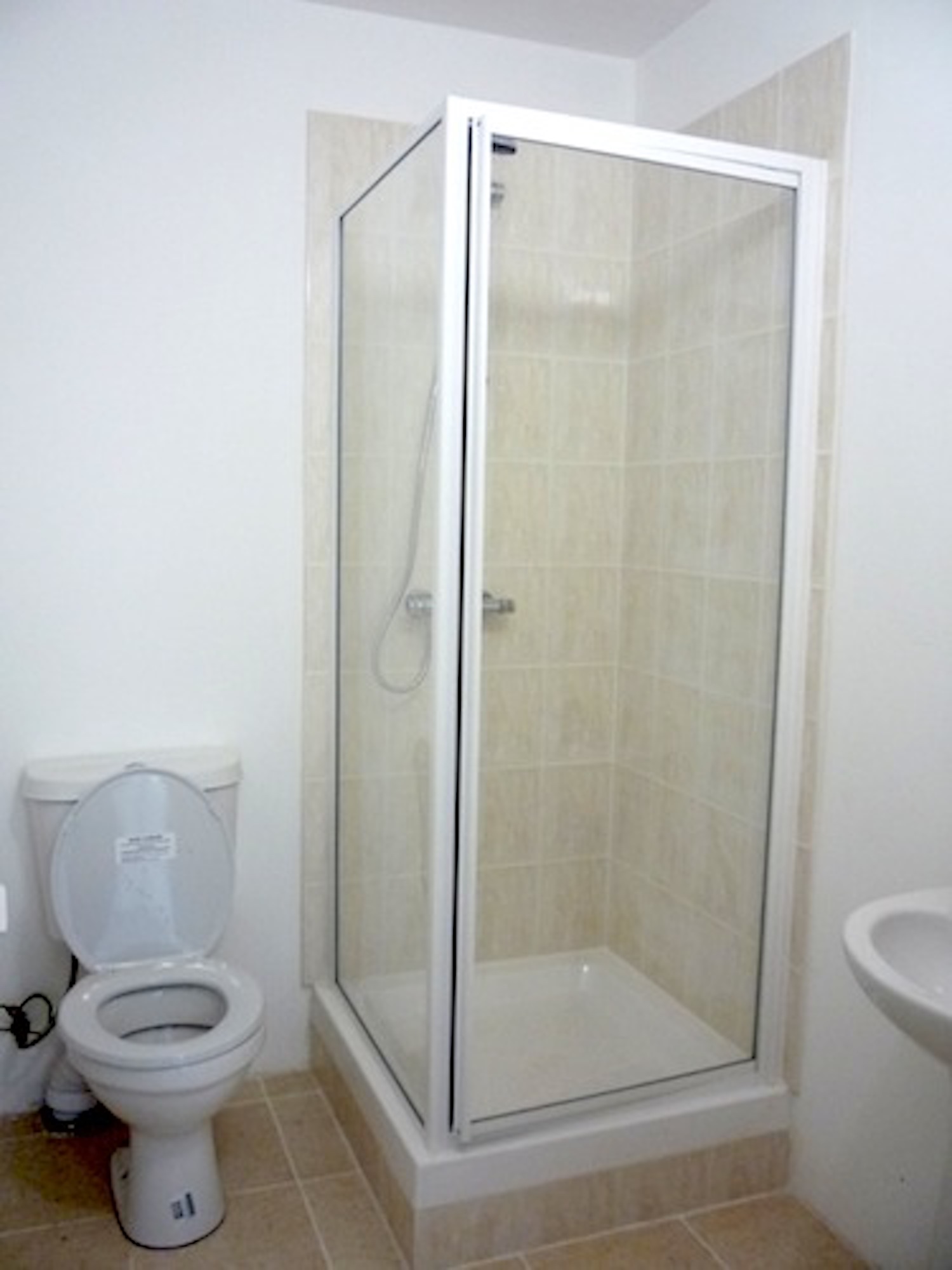 There is a separate shower / toilet room, and also a kitchen sink with worktop in the main area.