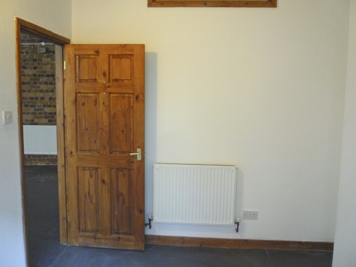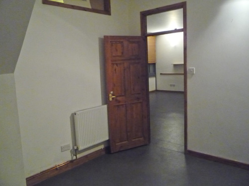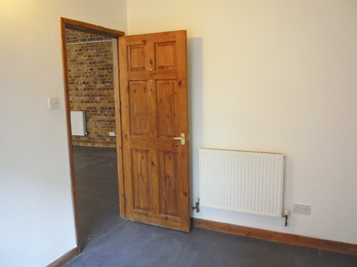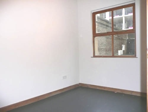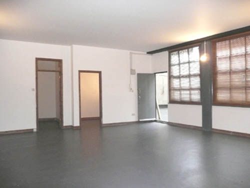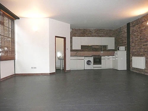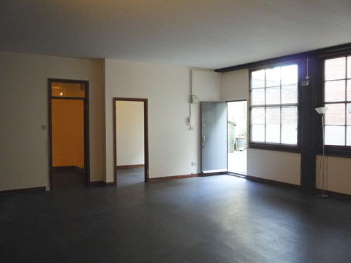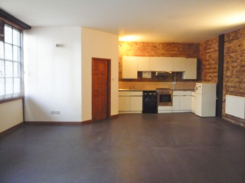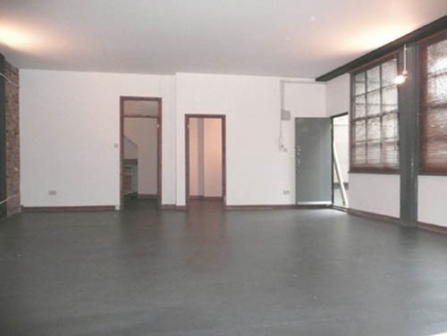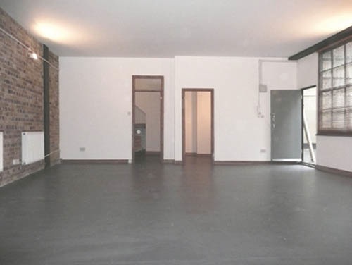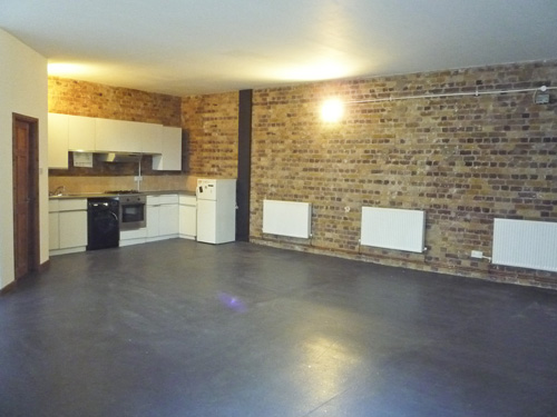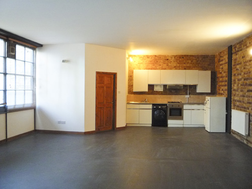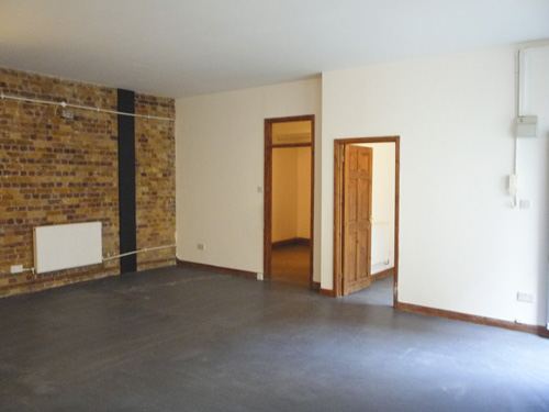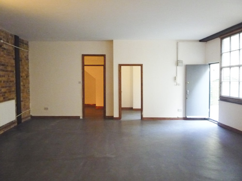 800 sq ft ground floor live work unit in converted warehouse with large open area and 3 rooms