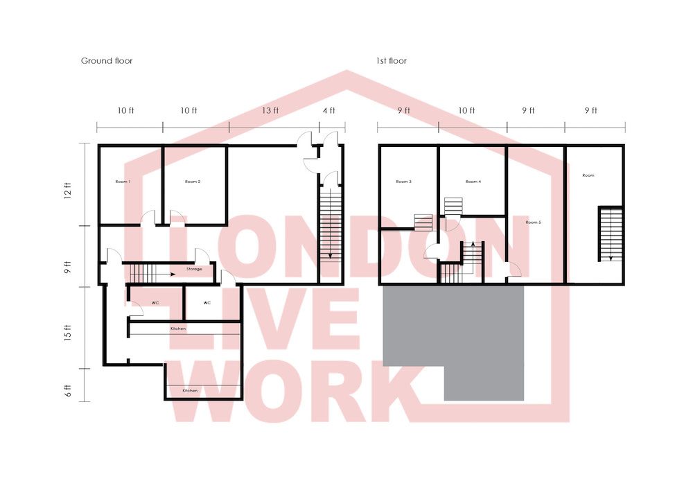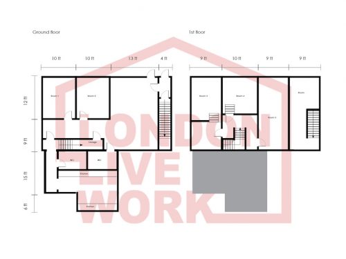The unit is made up of a huge 1100 sq ft on the ground floor and 800 sq ft on the first floor.