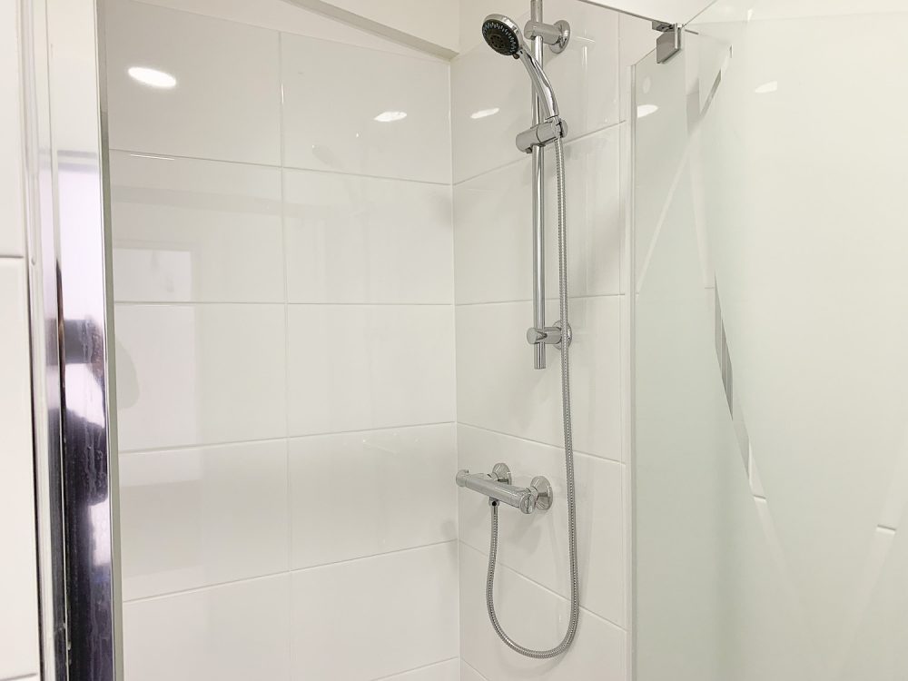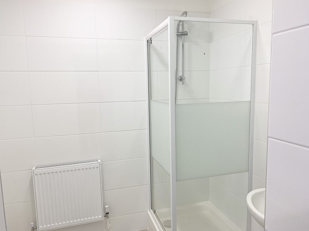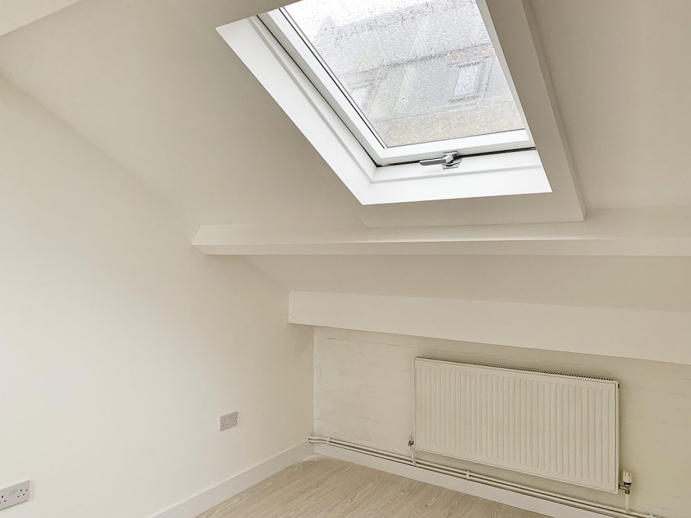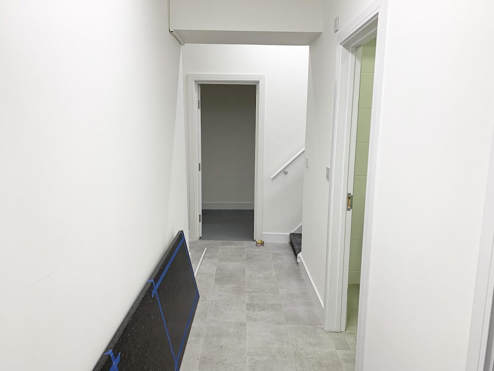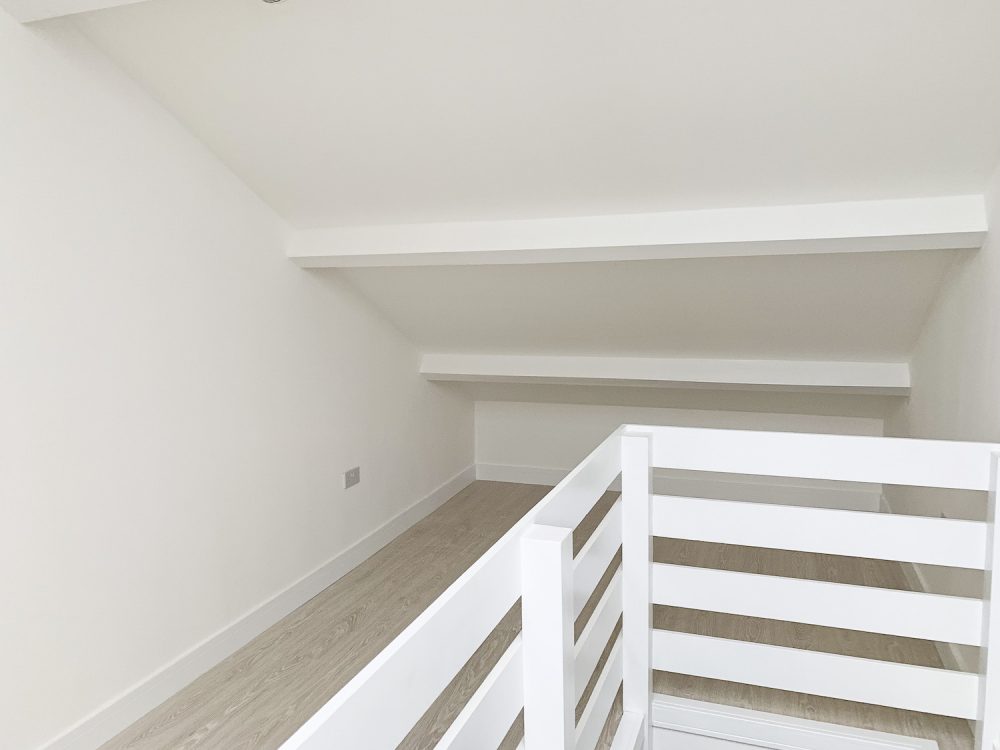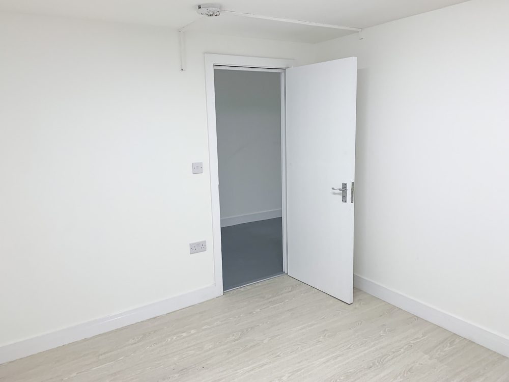 The unit is bright, and painted white, with a flint grey concrete floor. All bedrooms are bright with an openable window or skylight.